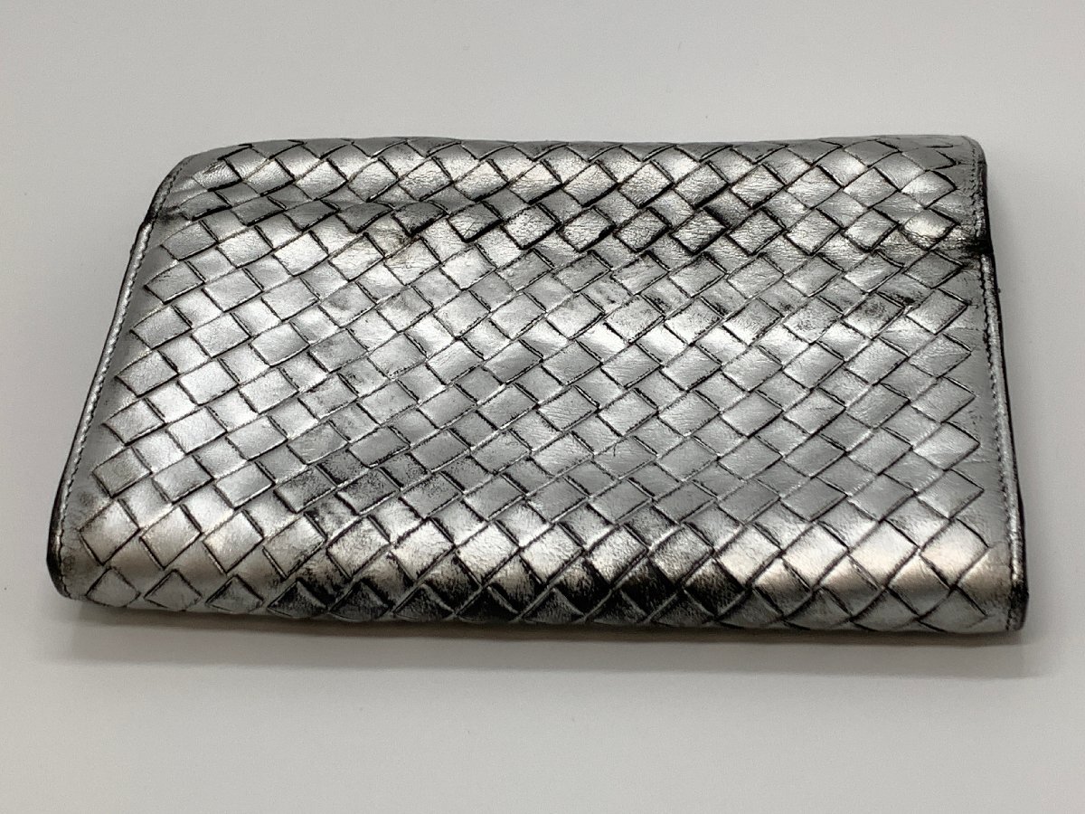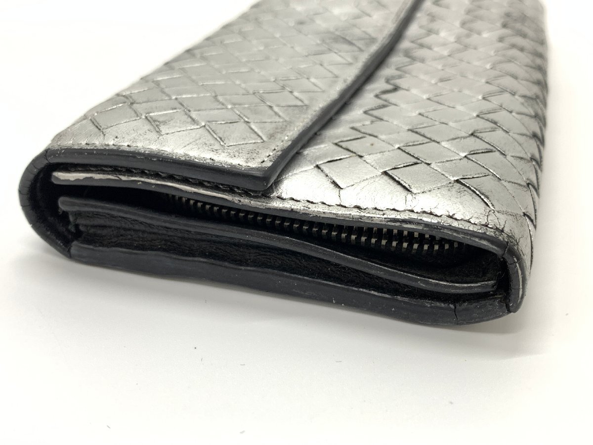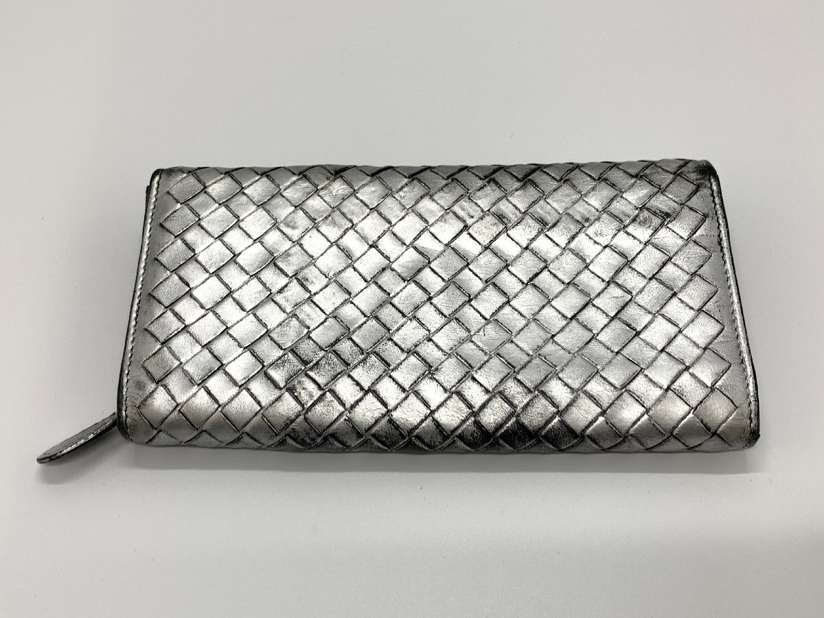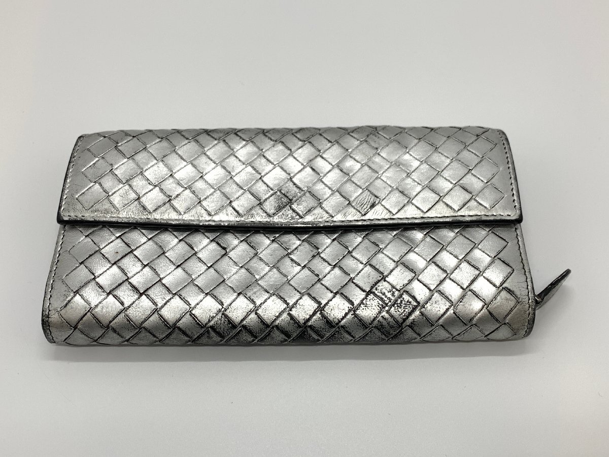 【商品名】BOTTEGA VENETA ボッテガヴェネタ イントレチャート 二つ折り財布 長財布 シルバー ☆良品☆[84-1004-2E12] | |||||