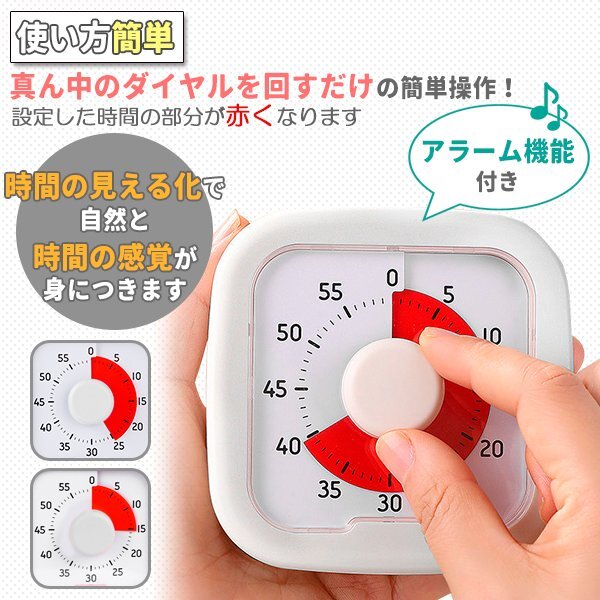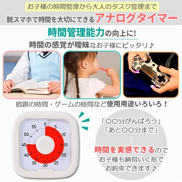 タイマー 子供 子ども スクールタイマー キッチンタイマー タイムタイマー 学習 勉強 知育 学習タイマー 時間管理 アナログ ホワイト 白