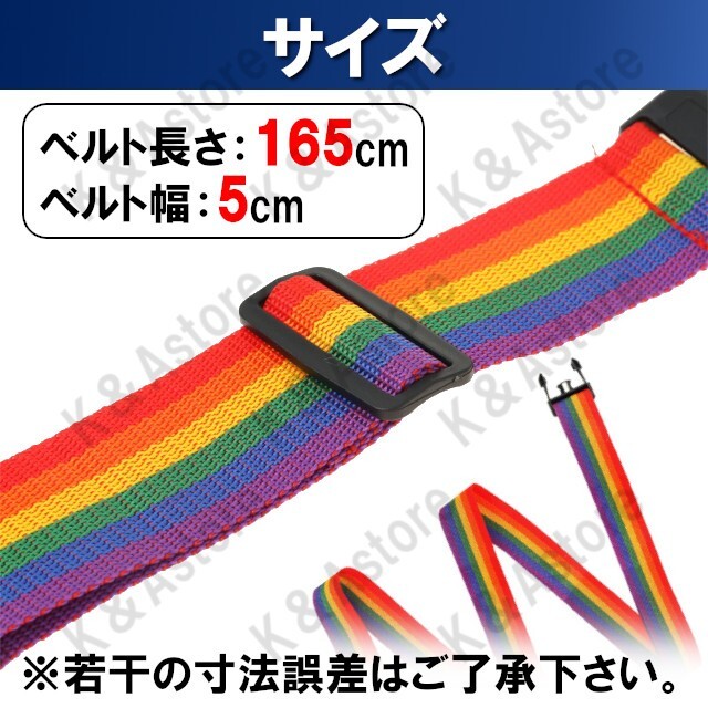 スーツケース用 ベルト キャリーバッグ キャリーケース バンド 固定 旅行グッズ トラベル 出張 荷物 荷締め 梱包 調整式 レインボー 虹