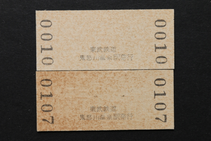 東武鉄道地紋入り入場券 鬼怒川温泉駅 大人券小児券2枚セット110