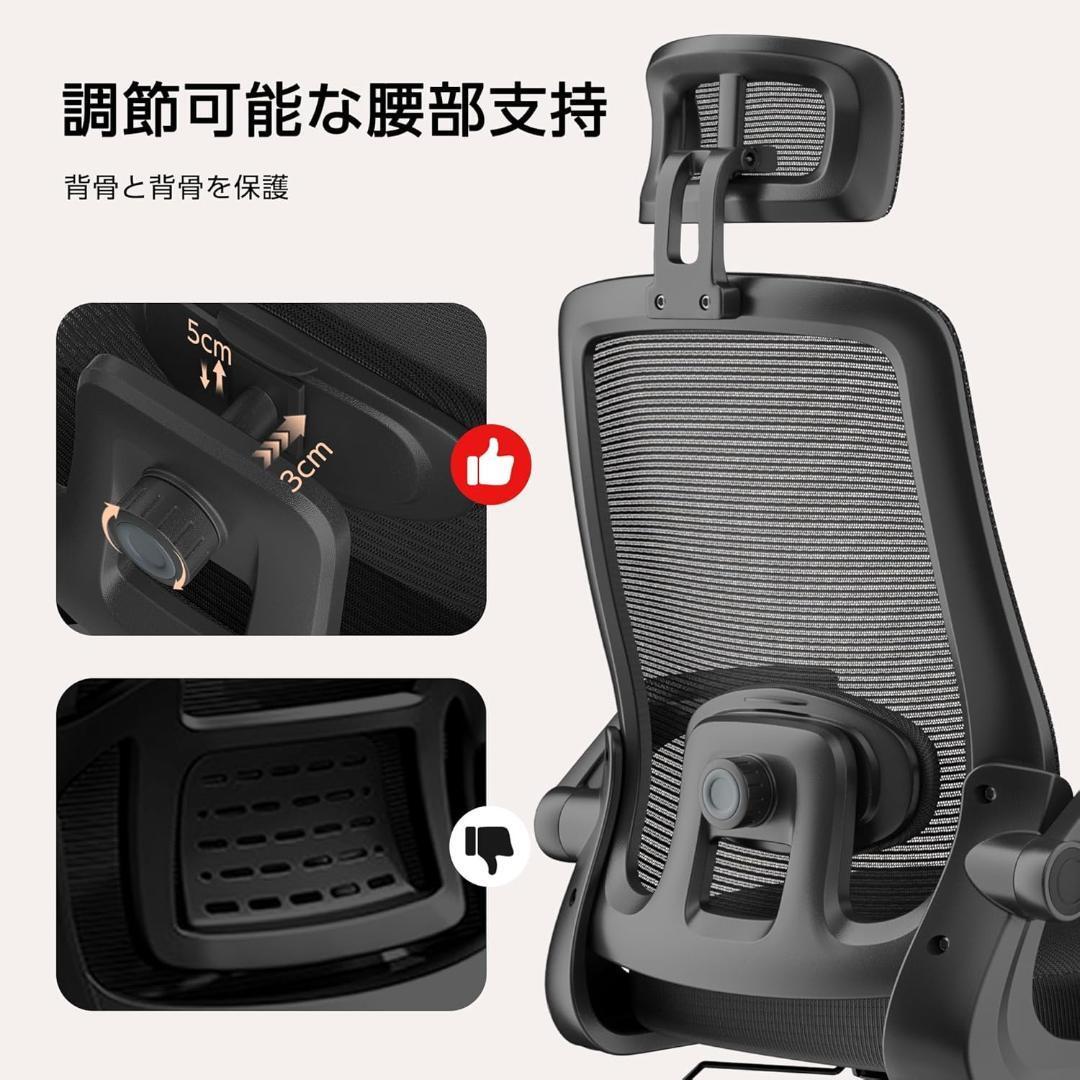 【人間工学5点サポート|独立腰サポート+2Dヘッドレスト調整】 S字立体背もたれ+独立腰クッション、で腰椎に密着。上下5 CMで調節可能、前後3 CMで調節可能。腰枕にはスポンジが付属しており、体をよりリラックスさせることができます。人間工学に基づいたS型背もたれ設計が、体の曲線にぴったりフィット、ランバーサポートも装備して背骨をしっかりサポートし、長時間座っても腰への負担を軽減し、安心して作業や勉強できます。このオフィスチェアは2Dヘッドレストを採用して7cm上下昇降可能で45°角度調整でき、自分に適する高さや角度を調整して完全に頭部や首を支えることができます。猫背防止&姿勢矯正を実現。45°の「背もたれ連動ロッキング機能」