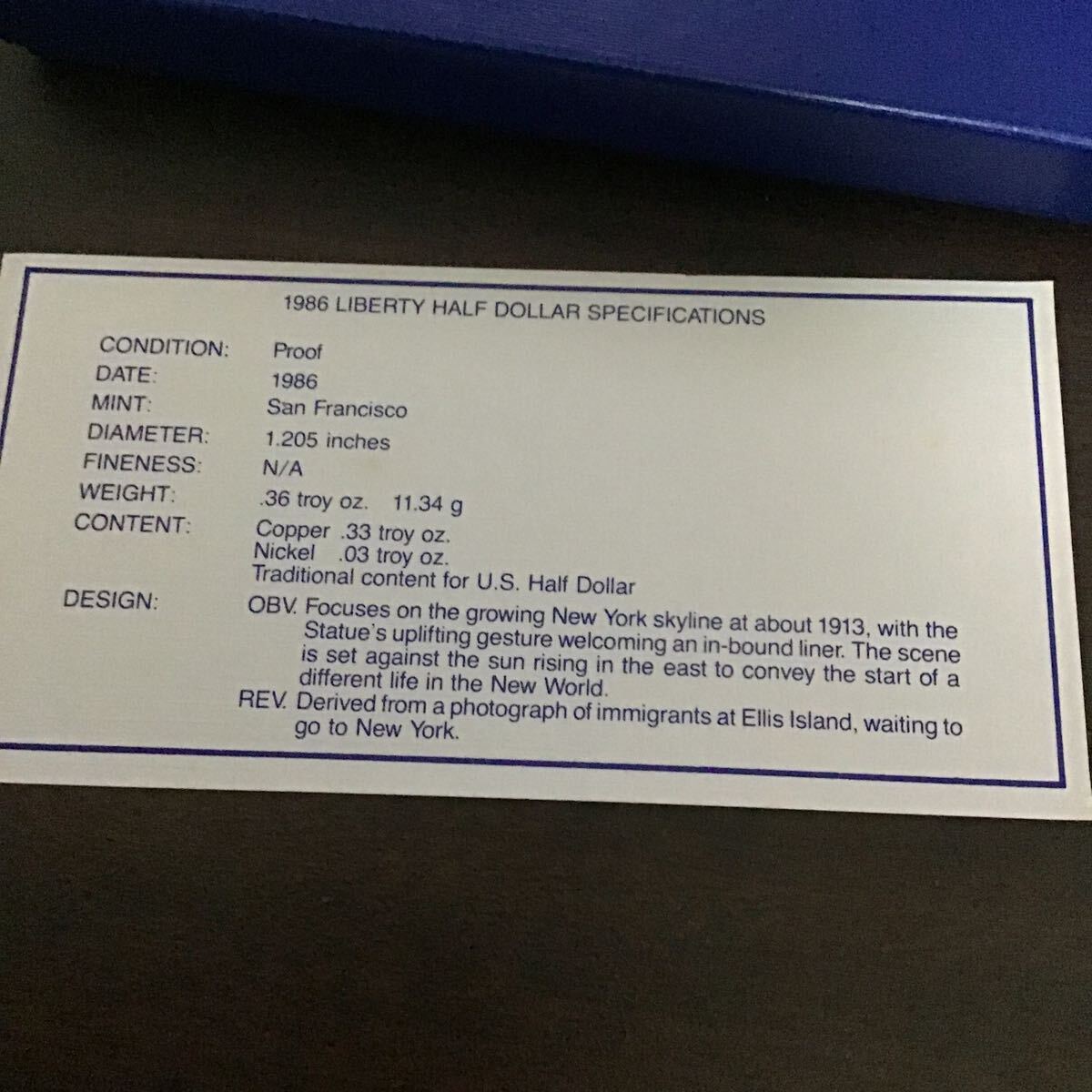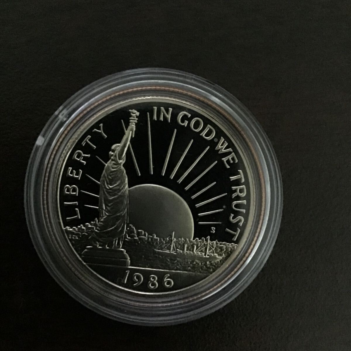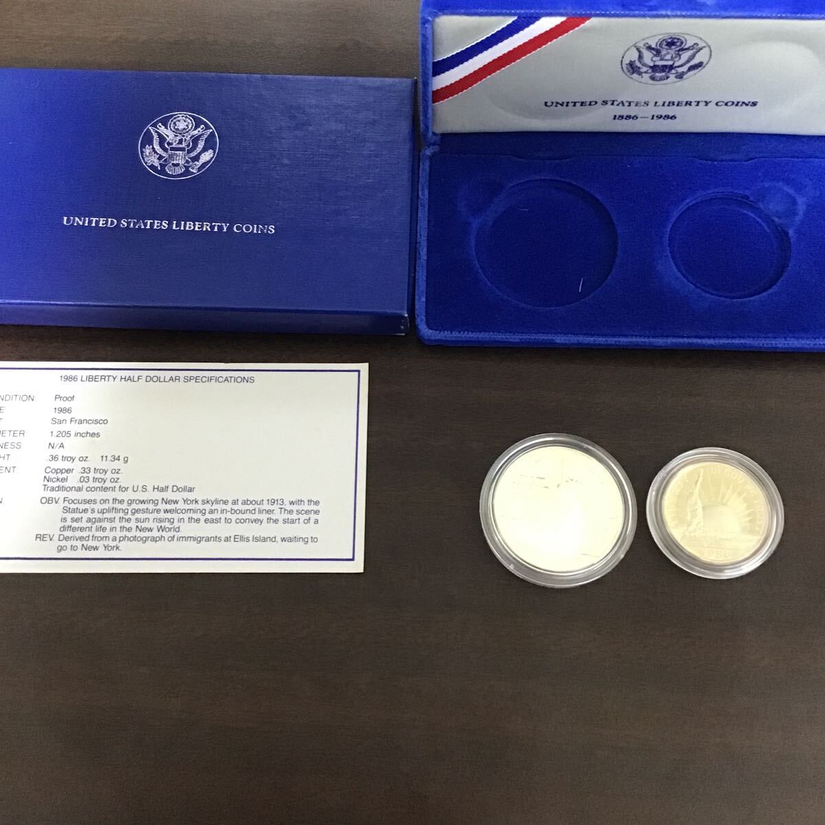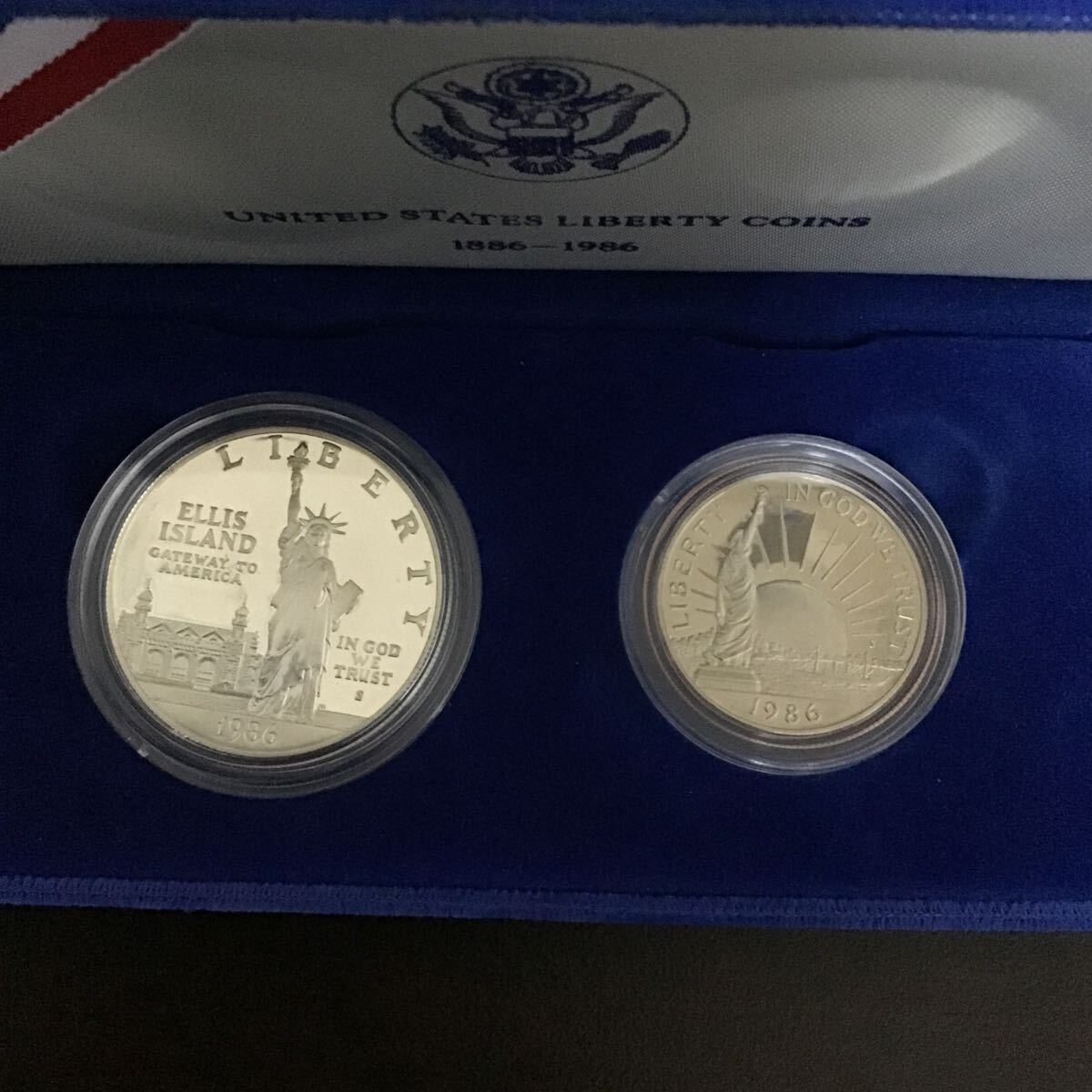 アメリカ 自由の女神像 1ドル 銀貨 1986年 プルーフ銀貨 ケース付き 26.73g 自由の女神100年 50セント白銅貨 ケース付き 管100402