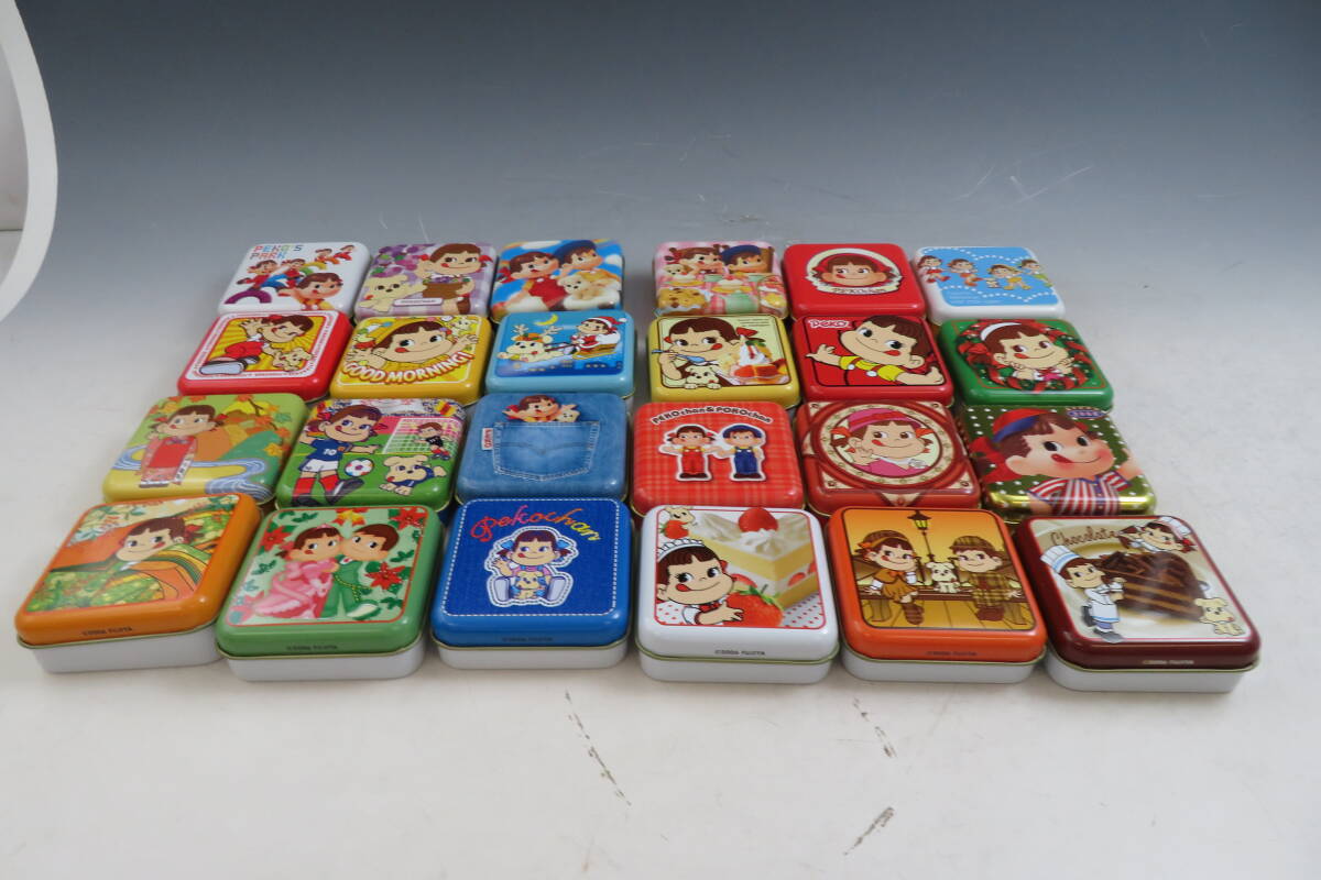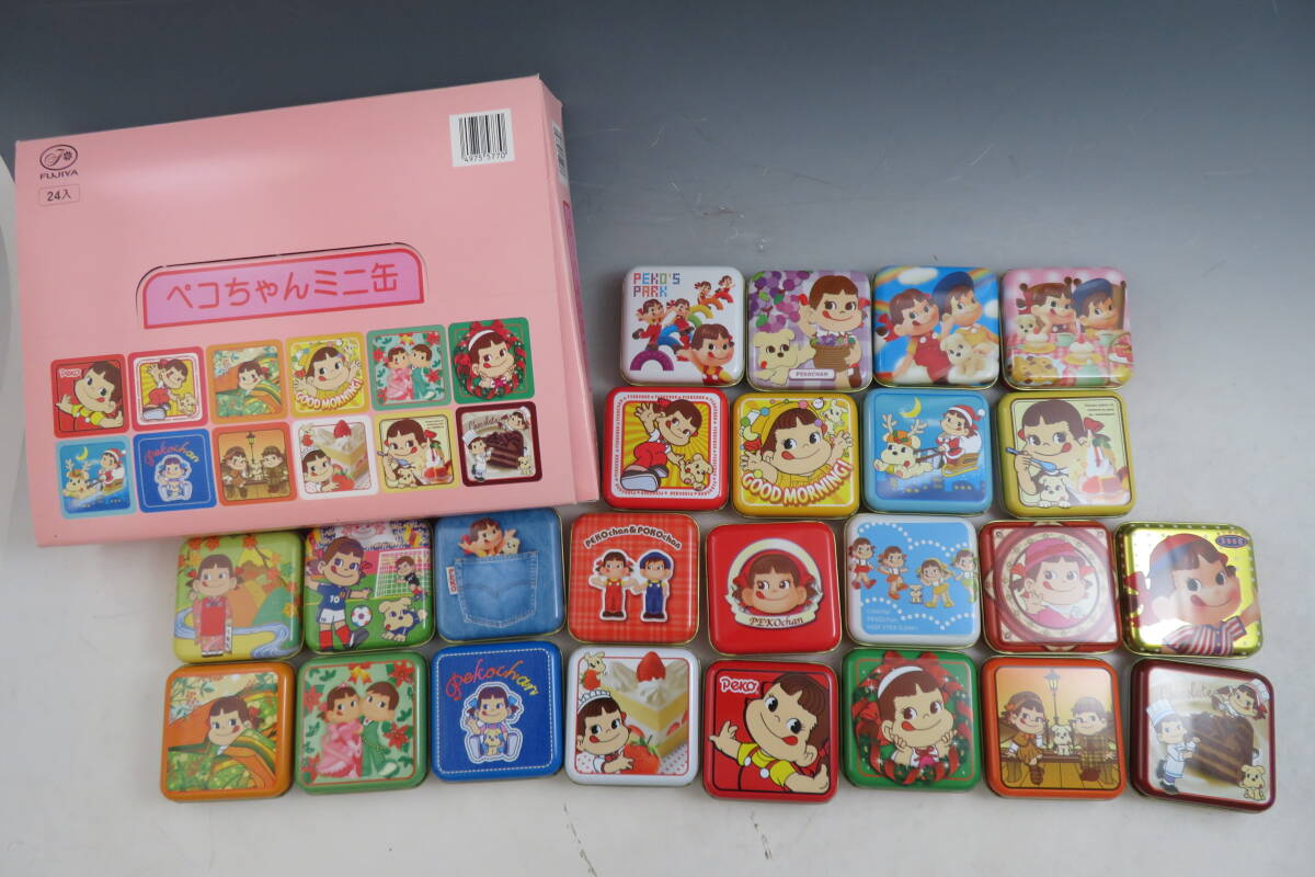 【超希少★当時物】不二家 FUJIYA ペコちゃんミニ缶 パート4 2007年 キャンディ缶 中身無し 24個 全揃 未使用保管品 | |||