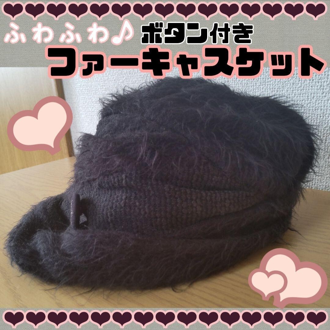 #ブラック #キャスケット #ファー #帽子 #ハンチング #秋 #冬 #レディース #ふわふわ #もこもこ #黒 #ボタン #フェイクファー
