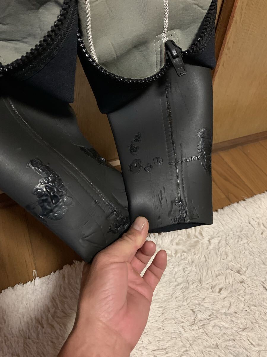3枚目画像にあるようにインナーに切り傷みたいな物が、購入時にありましたので、ウェットボンドにて補修してあります。水の侵入はありません。