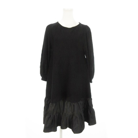アプワイザーリッシェ Apuweiser-riche ニットワンピース ミニ 長袖 切替 ティアード 2 M 黒 ブラック /MN6 レディース