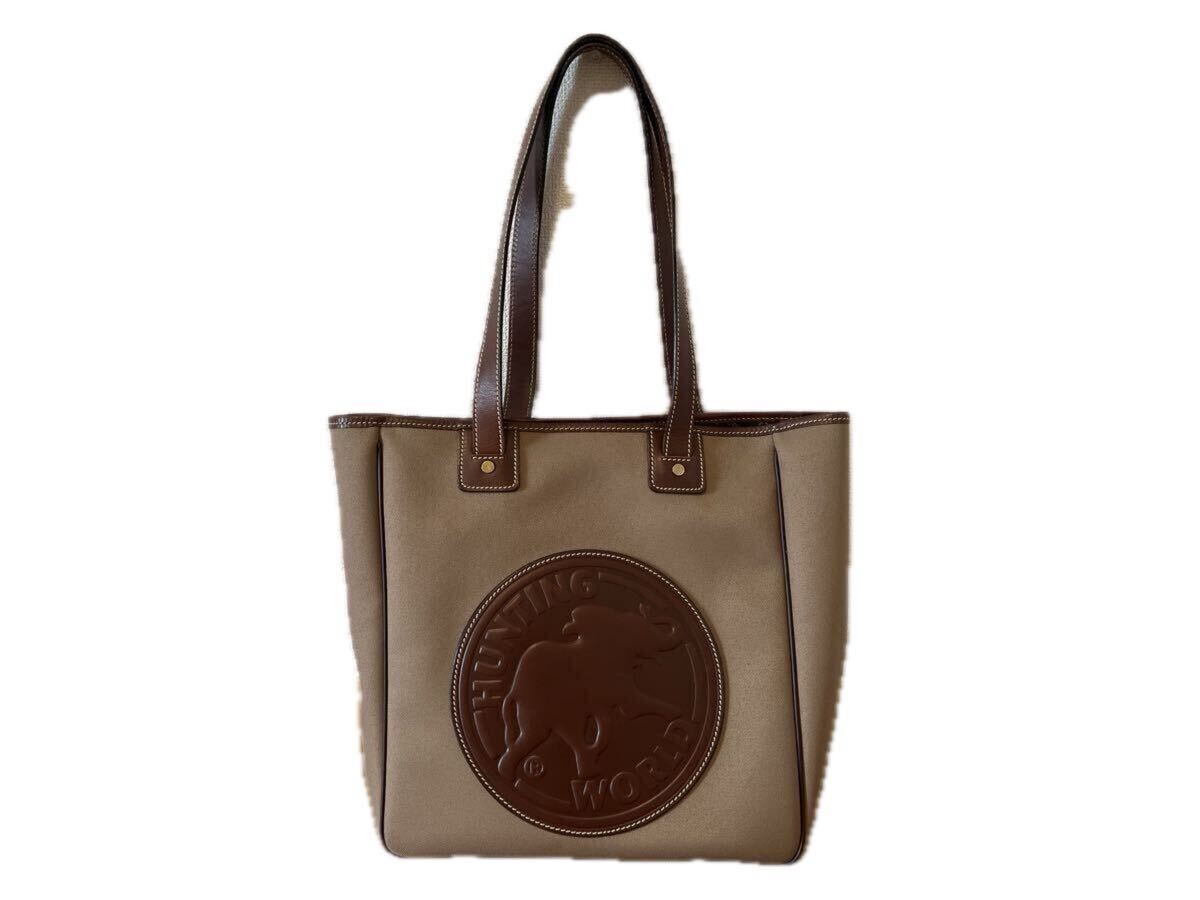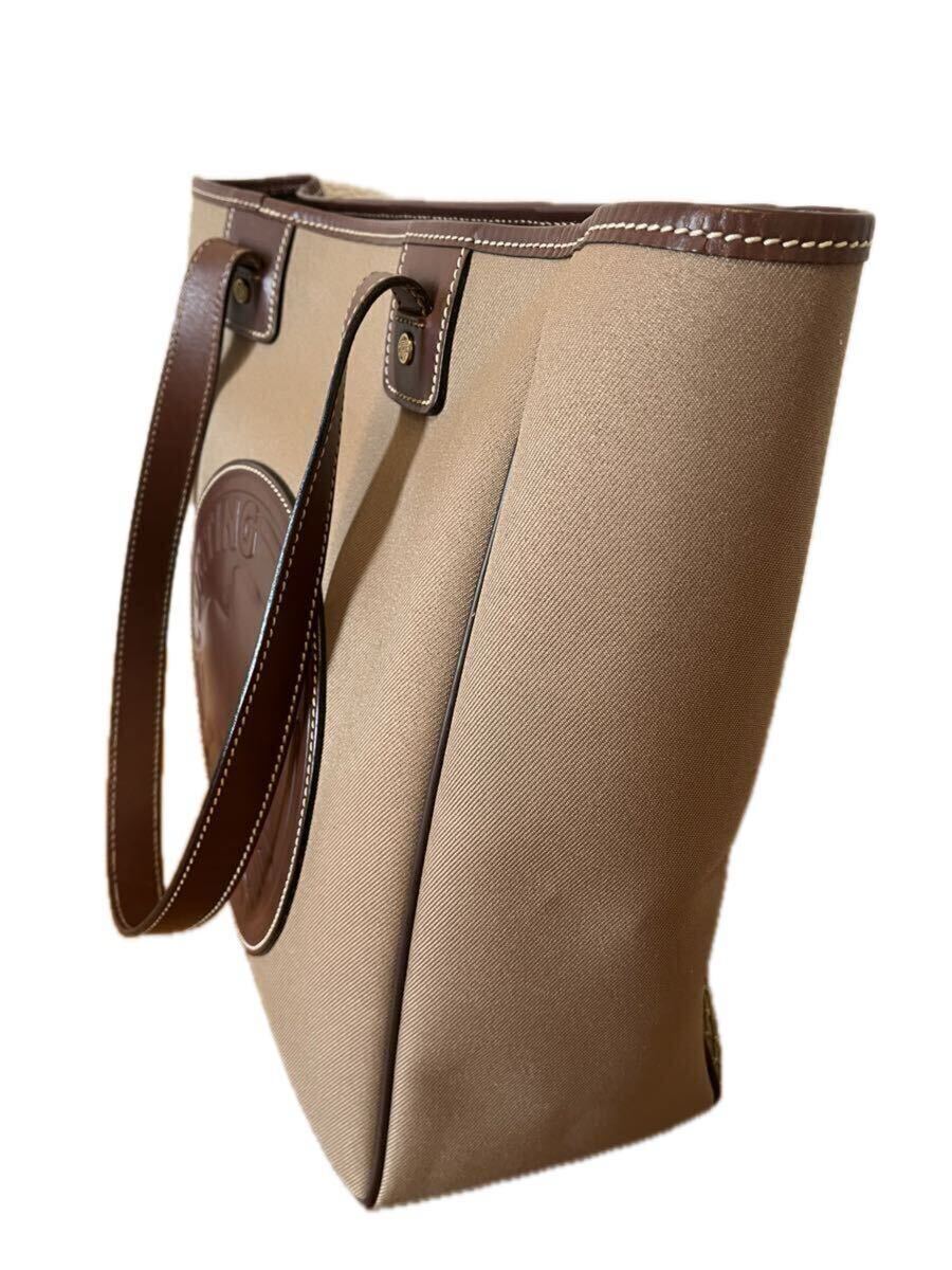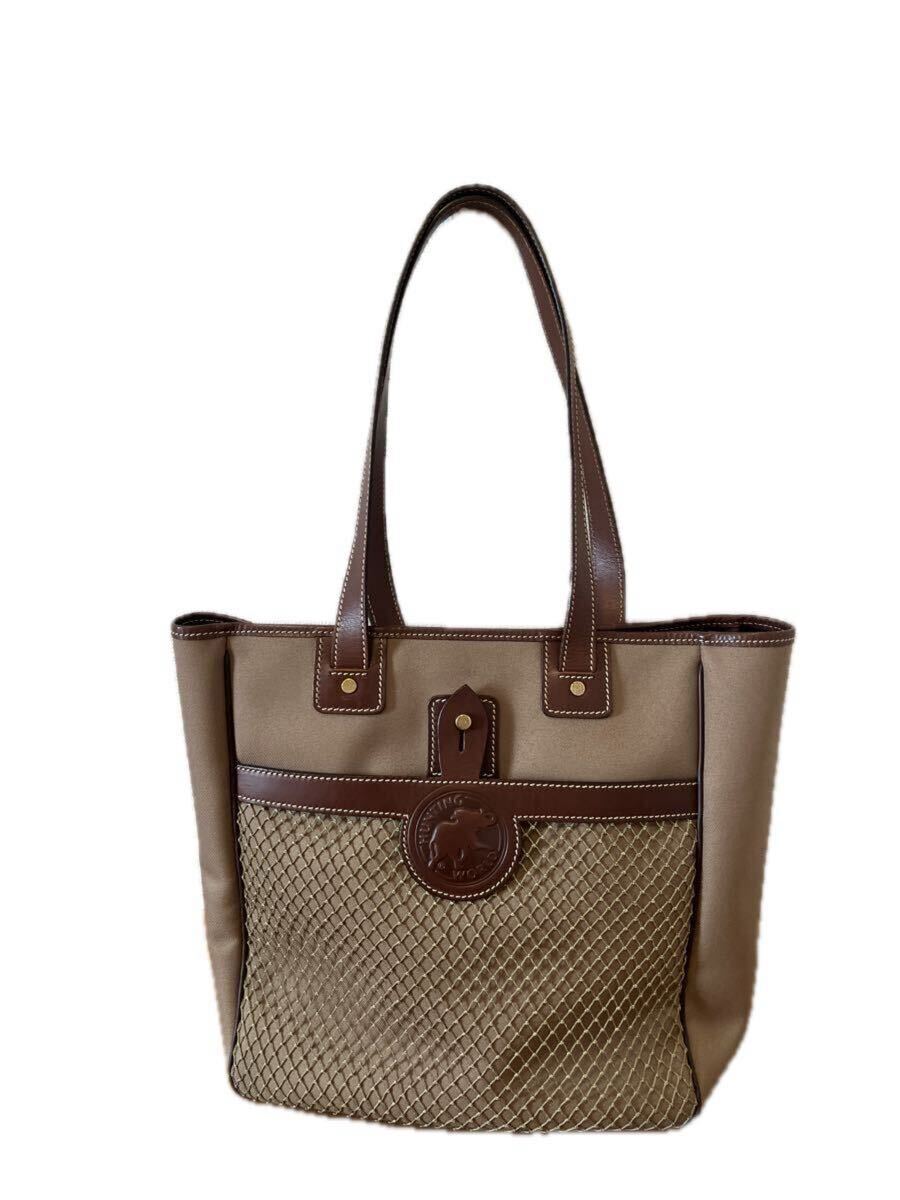ロゴマークと持ち手などレザー。カーキ色。A4サイズも余裕にたっぷり入ります!(横33cm×高35cm×マチ14cm) 細かい傷が数か所ありますが目立つ汚れはありません。ノークレーム、ノーリターンでお願いします。