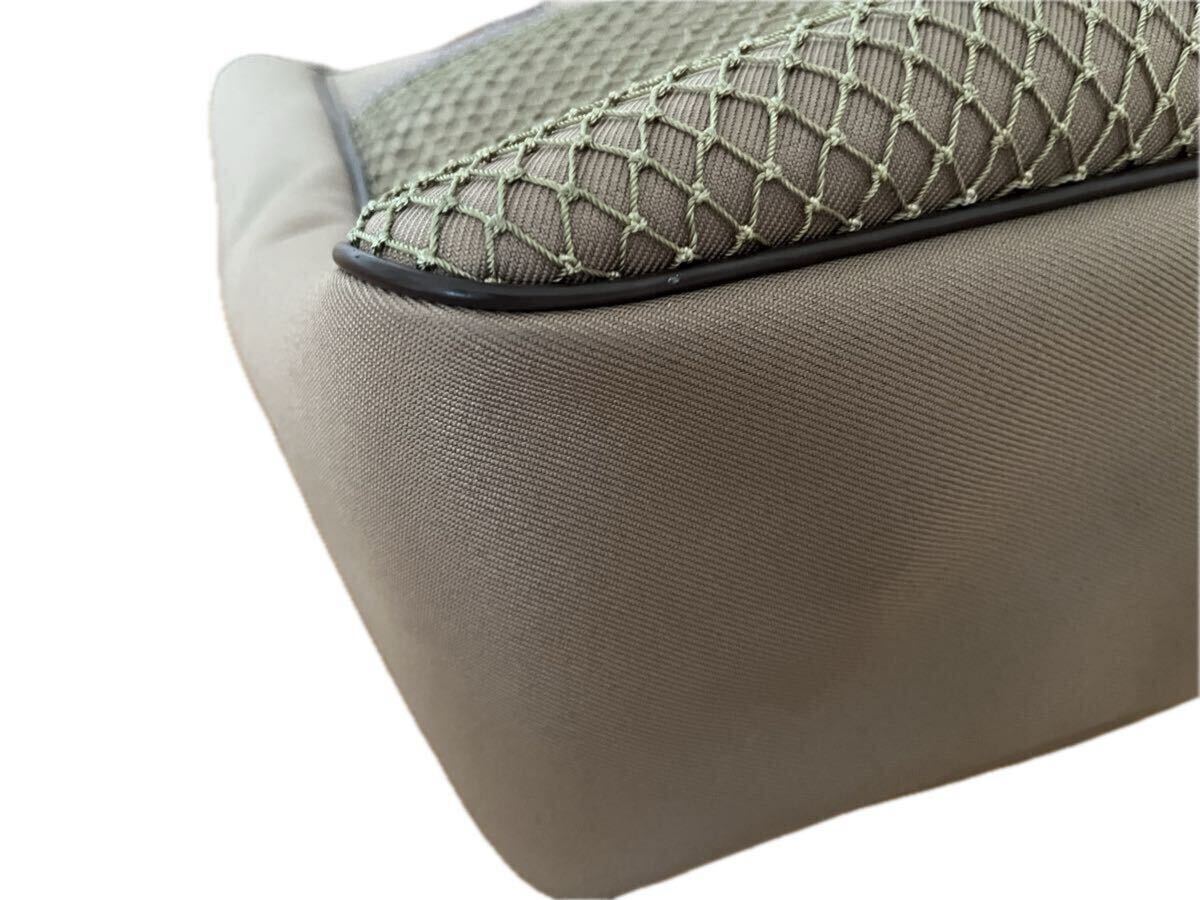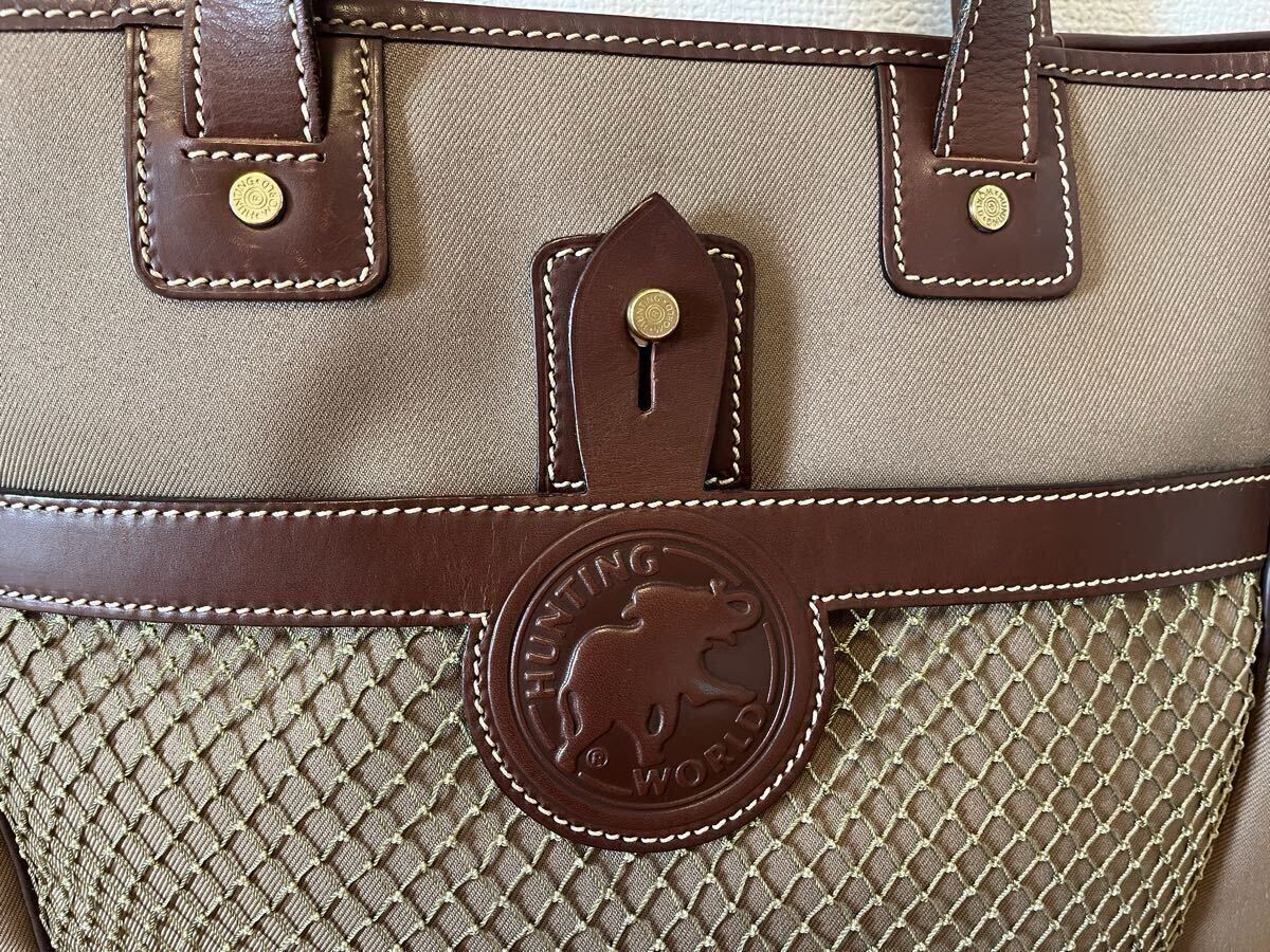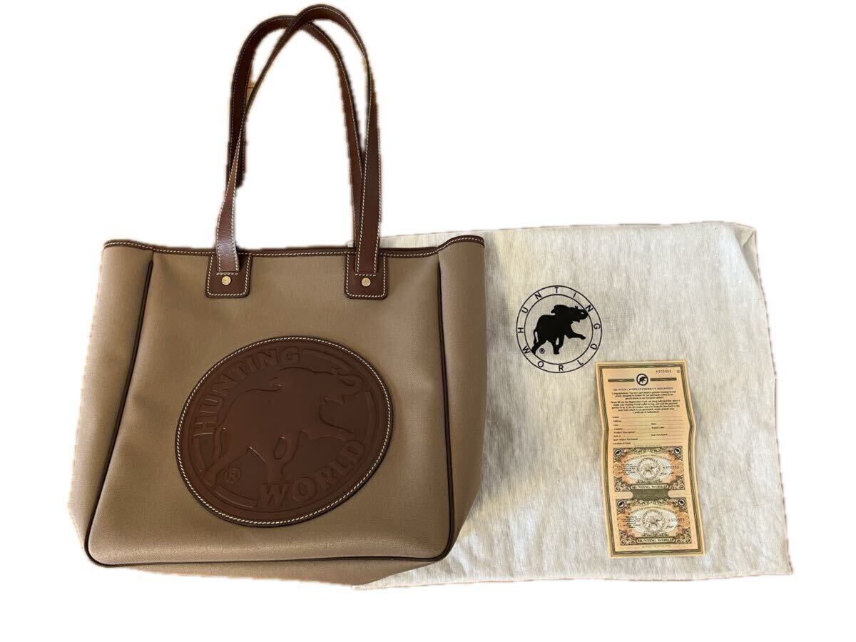 ロゴマークと持ち手などレザー。カーキ色。A4サイズも余裕にたっぷり入ります!(横33cm×高35cm×マチ14cm) 細かい傷が数か所ありますが目立つ汚れはありません。ノークレーム、ノーリターンでお願いします。