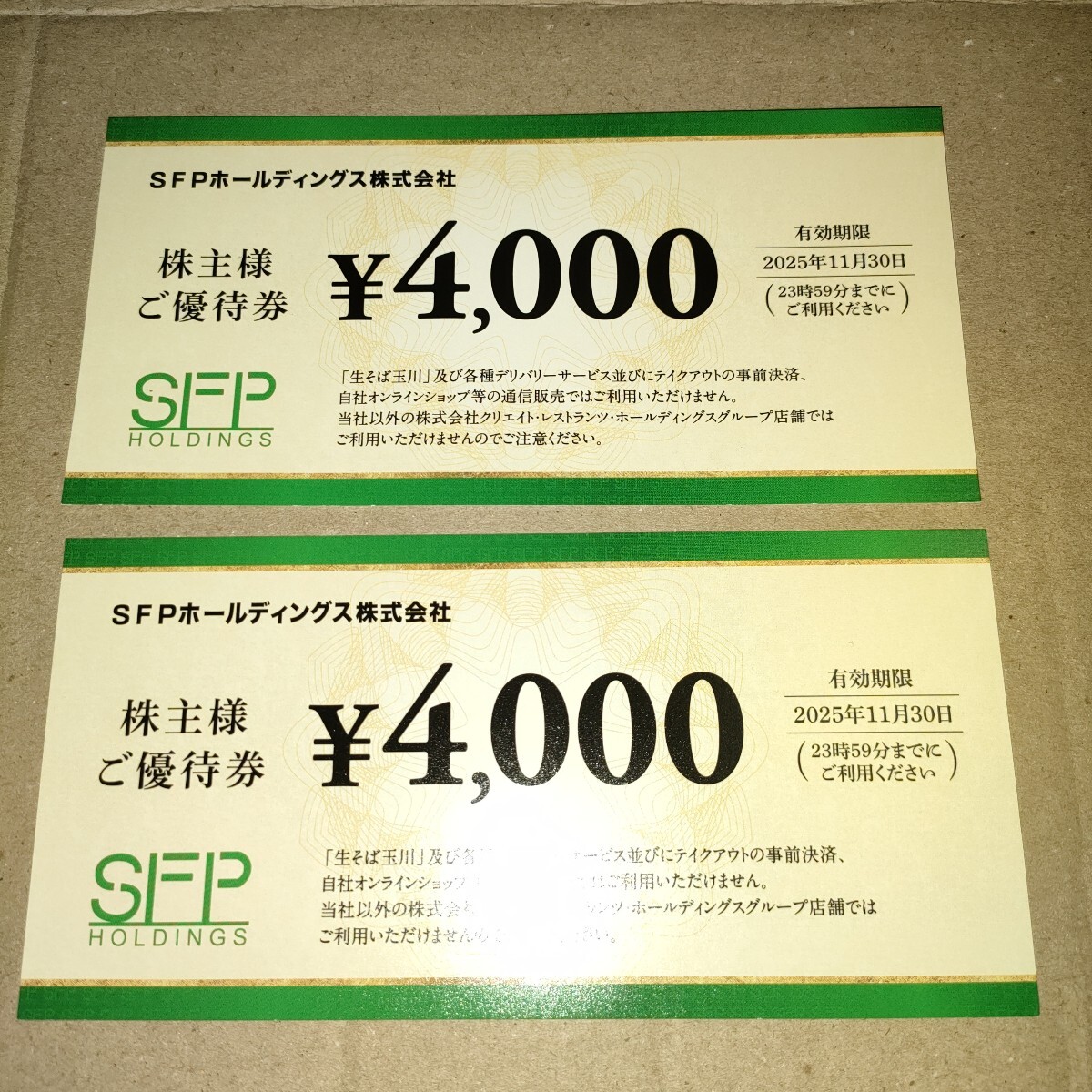 SFPホールディングス株主優待券 8,000円分 2025.11.30迄 ゆうパケット配送
