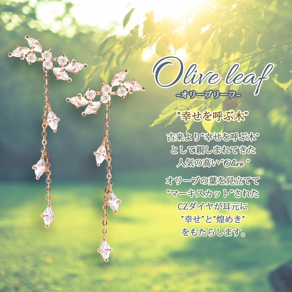 新品/ピアス/K18GP/リーフ/ロング/ダイヤ/18金/ピンクゴールド/レディース/両耳/スタッド/2way/葉/チェーン/揺れる/CZ/シンプル/上品/女性