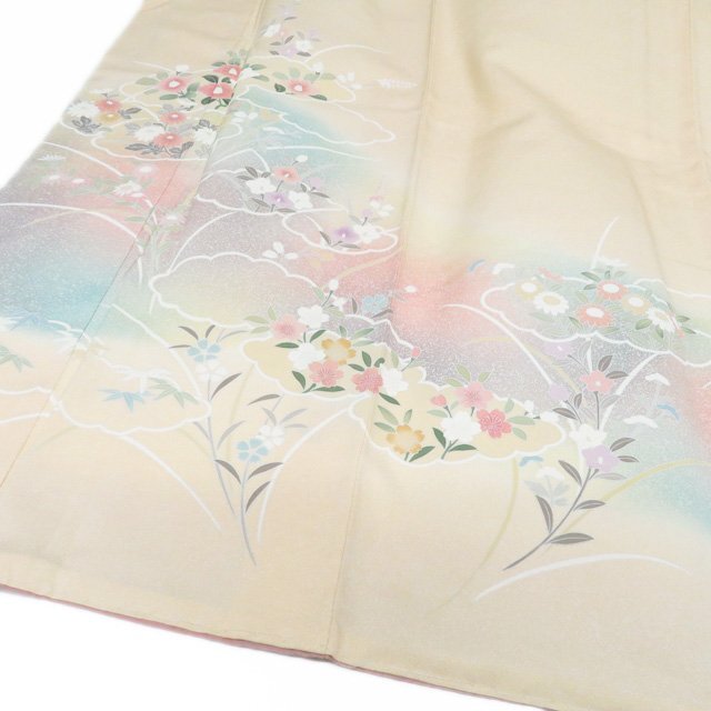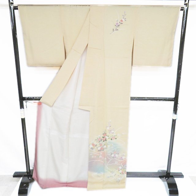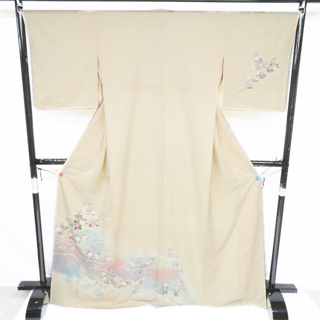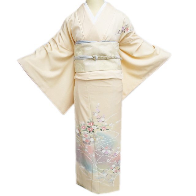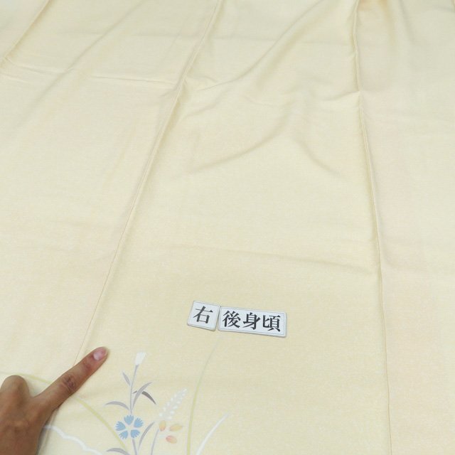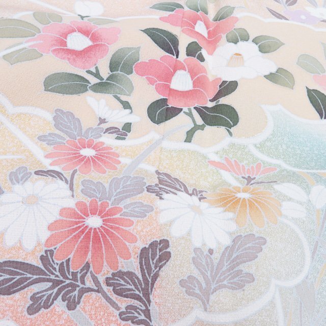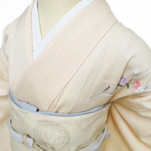 丈170cm(+0) 裄68.5cm(+1.5) 袖丈49cm(+2) 前幅24cm 後幅30.5cm ※サイズのお直し、承ります。 (身丈のみ、身幅のみのお直しは承っておりません) ※身丈は肩から測っております。 ※()内は※()内の数字はお直しで直せる長さを示しています。お仕立て直しの場合は胴裏を付け替えるため、さらに長く直せる場合があります。詳しくはお問い合わせください。 単位:cm 素材 正絹 商品ランク C ●着用時期 10月~5月(+-2週間) ●着用シーン 披露宴、パーティー、お出掛け、式典など ●お色 薄橙色 多色 右後身に着用時にわからない程度の面ヤケ、左前後袖に目立たない程度の汚れがございますが、まだまだご着用いただけるお品物です。 写真に写っている着物のみの販売で、帯等の付属品はついておりません。 一部商品は実店舗・他サイトでも並行して販売しておりますので売り切れの際はご了承ください。 その他多数販売中 ya- | ||||||