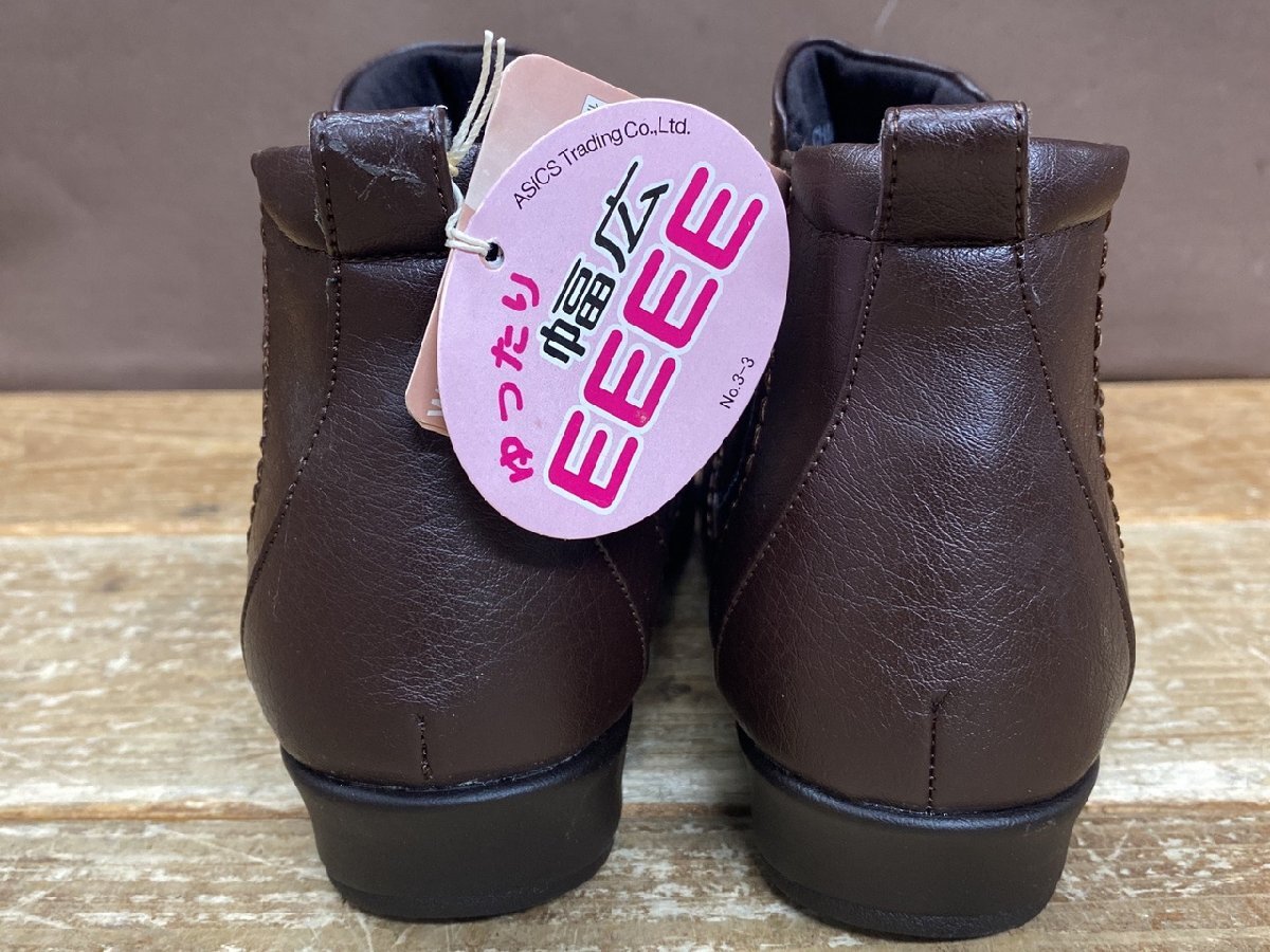【O-8289】タグ付き 未使用 asics texcy アシックス テクシー ショート ブーツ ブラウン系 サイズ22.5cmEEEE 幅広 同梱可【千円市場】
