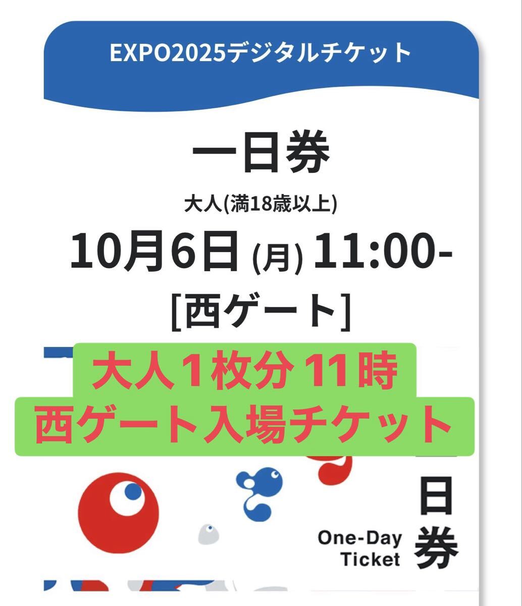 ★大人一日券10月6日(月)11:00〜西ゲート 10/6(月)11時〜★大人1枚