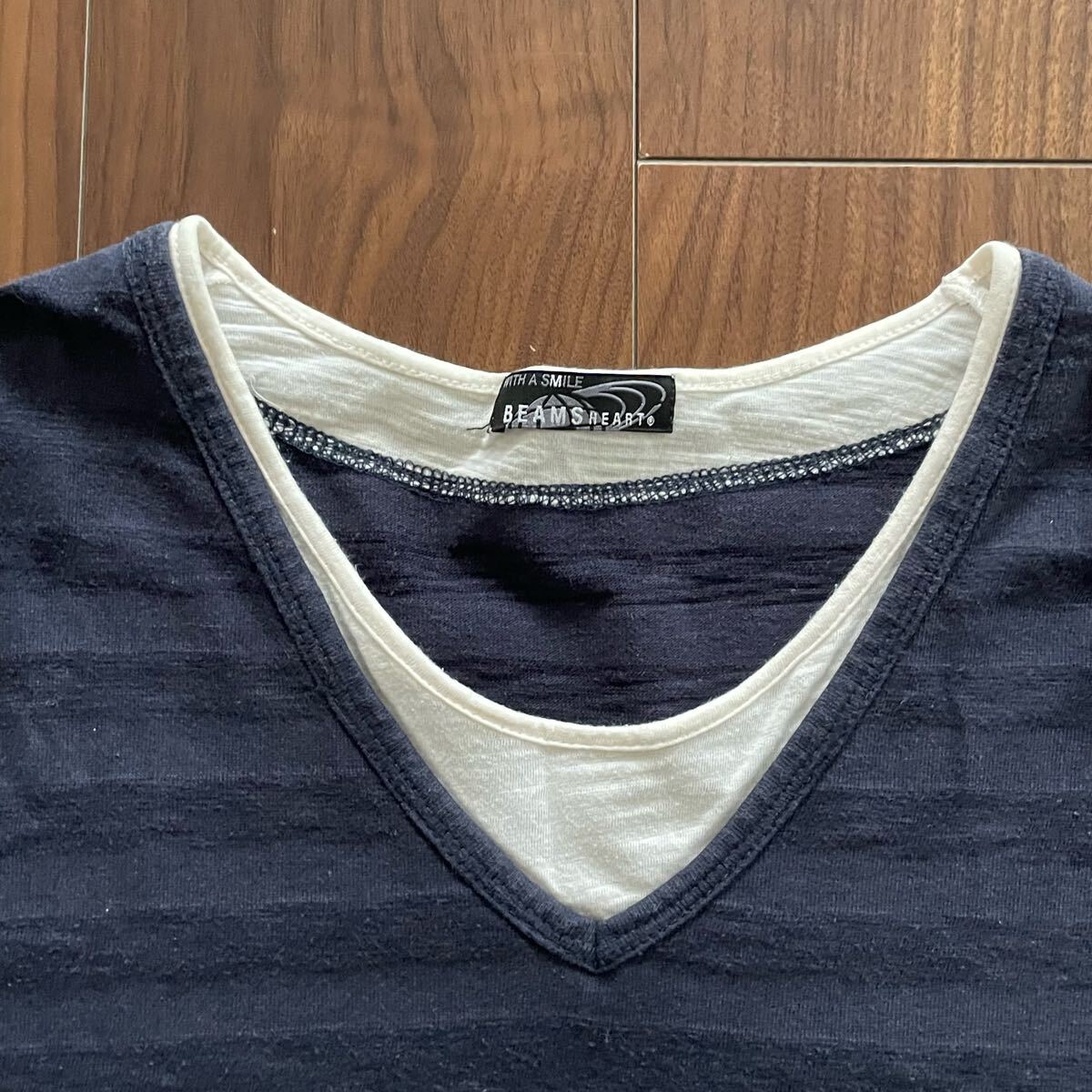 ☆BEAMS HEART ビームスハート☆長袖☆長袖カットソー☆Vネック☆Mサイズ☆ネイビー☆メンズ