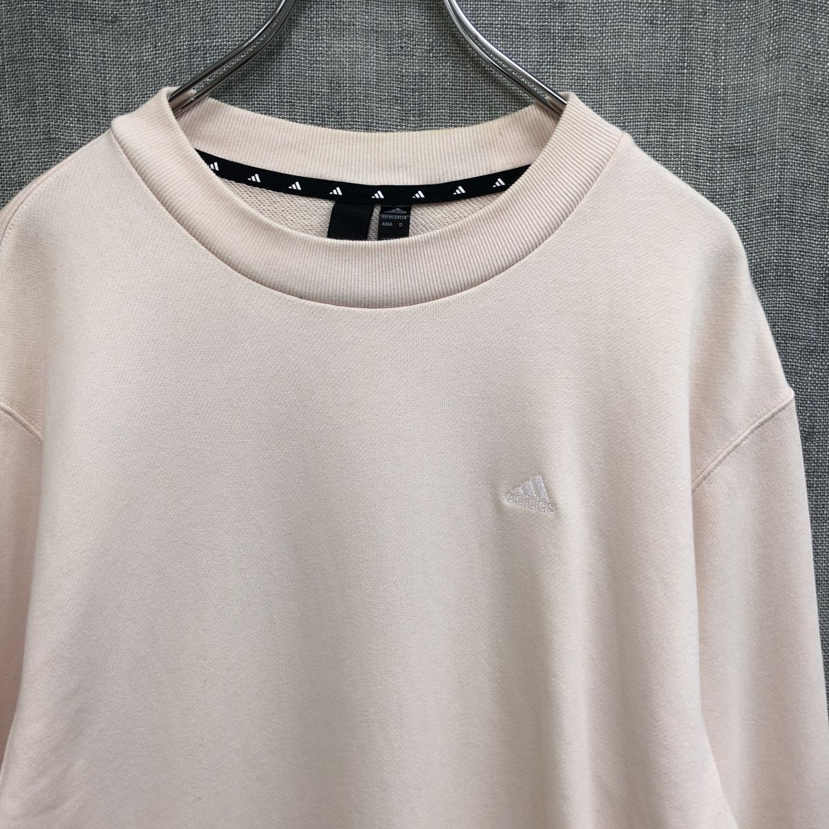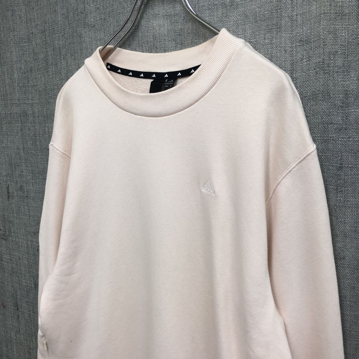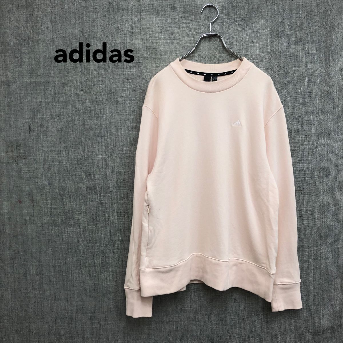 2O1355-Y◆adidas アディダス 長袖スウェットシャツ クルーネック 刺繍ロゴ リブ ワンサイドジップポケット メンズ ◆sizeM ピンク系 綿