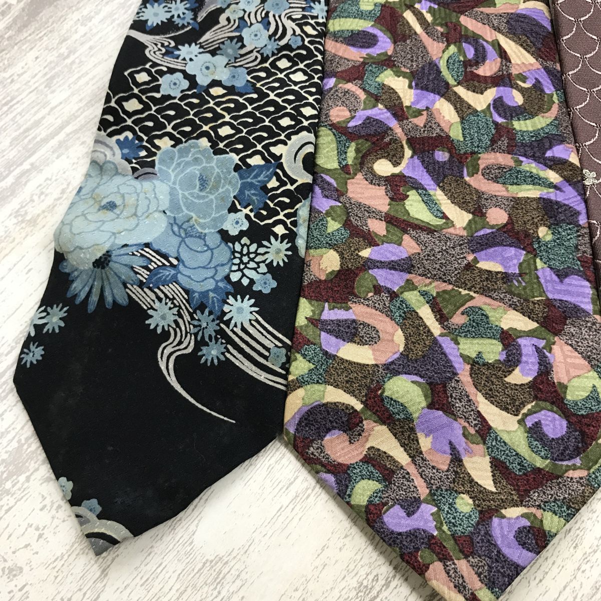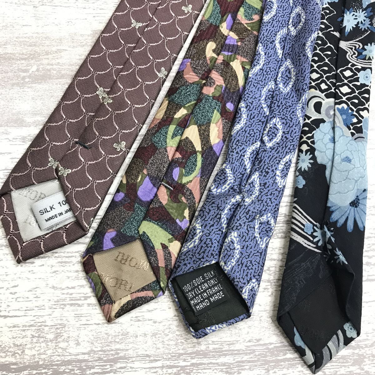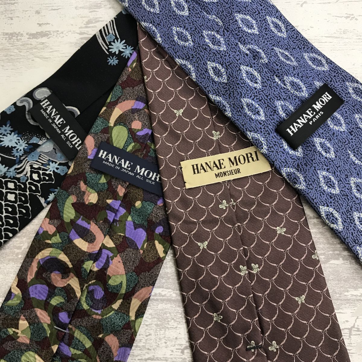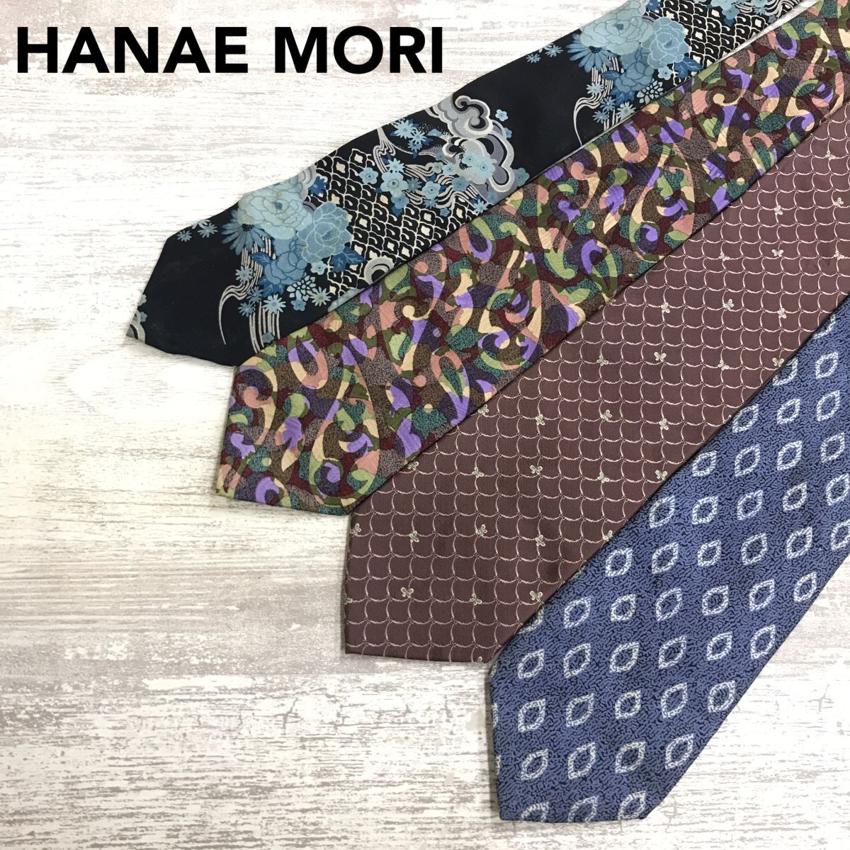 2O1101-R-N◆HANAE MORI ハナエモリ ネクタイ4点セット◆メンズ 紳士 ビジネス スーツ 絹 シルク まとめ 総柄 日本製 フランス製 花 蝶々