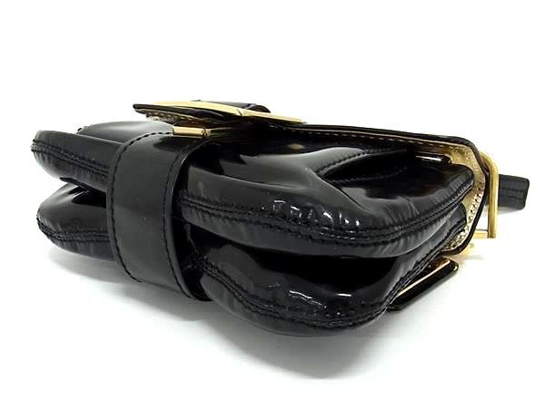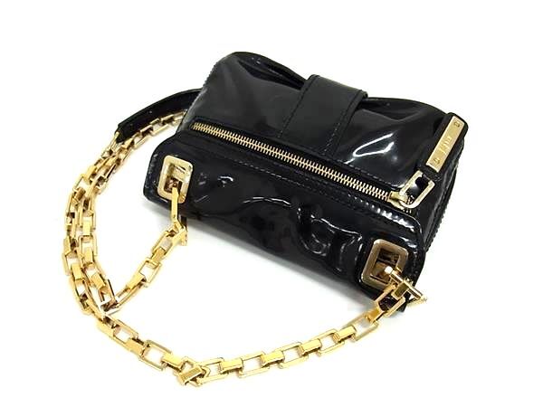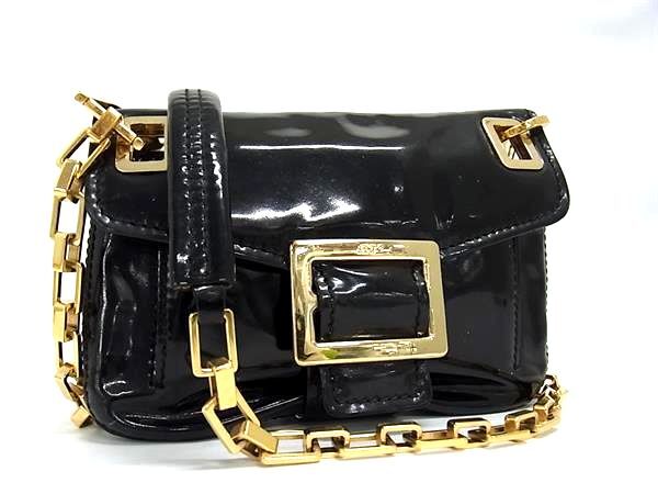 1円 Roger Vivier ロジェヴィヴィエ パテントレザー チェーン クロスボディ ショルダーバッグ 斜め掛け レディース ブラック系 FR4736