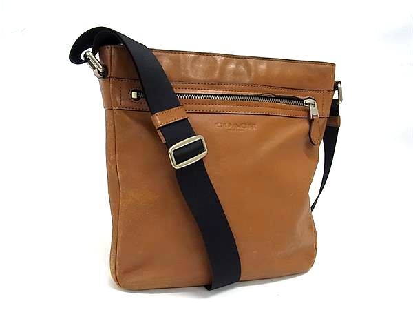 1円 COACH コーチ F71745 レザー クロスボディ ショルダーバッグ 斜め掛けかばん メンズ ブラウン系 BS0634