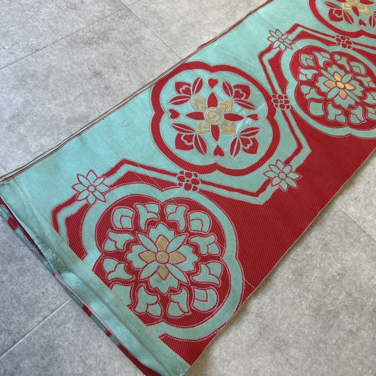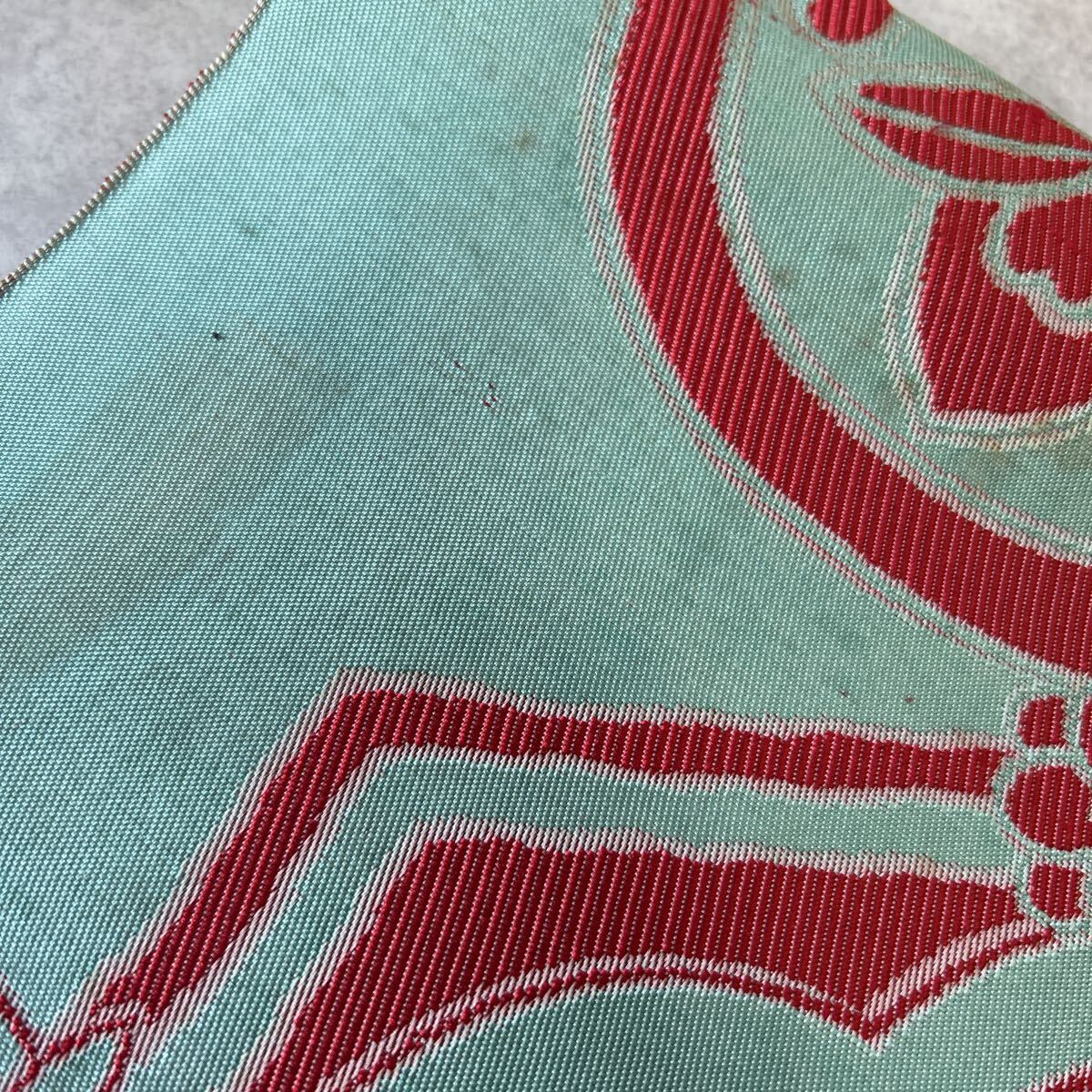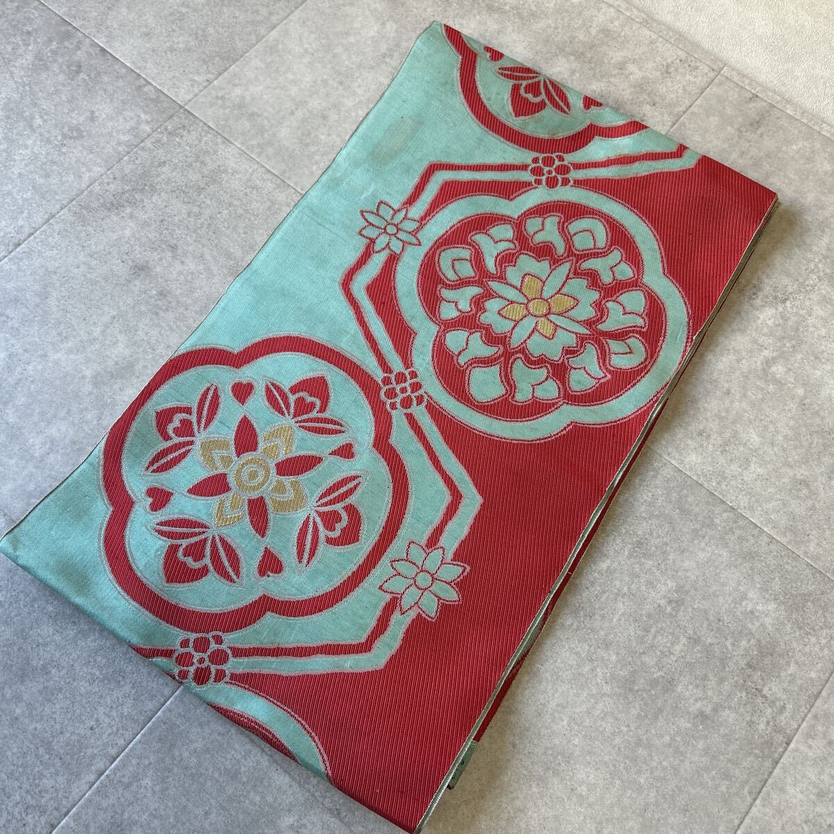 アンティーク 帯 着物 袋帯 青 花 表地のみ? 昭和レトロ 大正ロマン モダン 和洋折衷コーデ リメイク 25こ06-6k