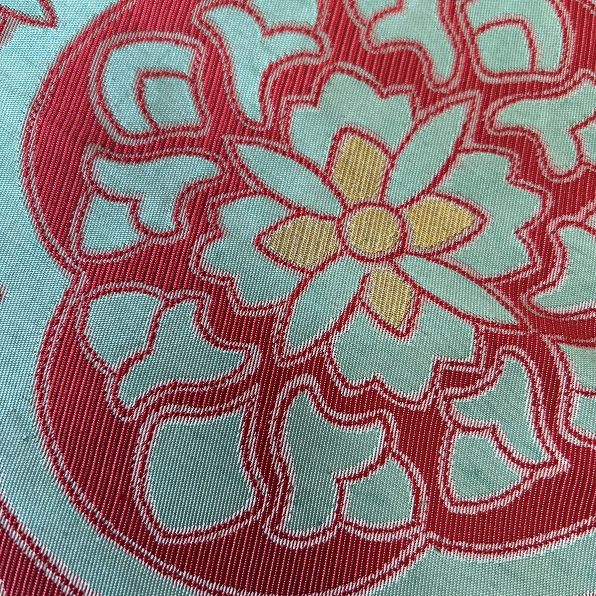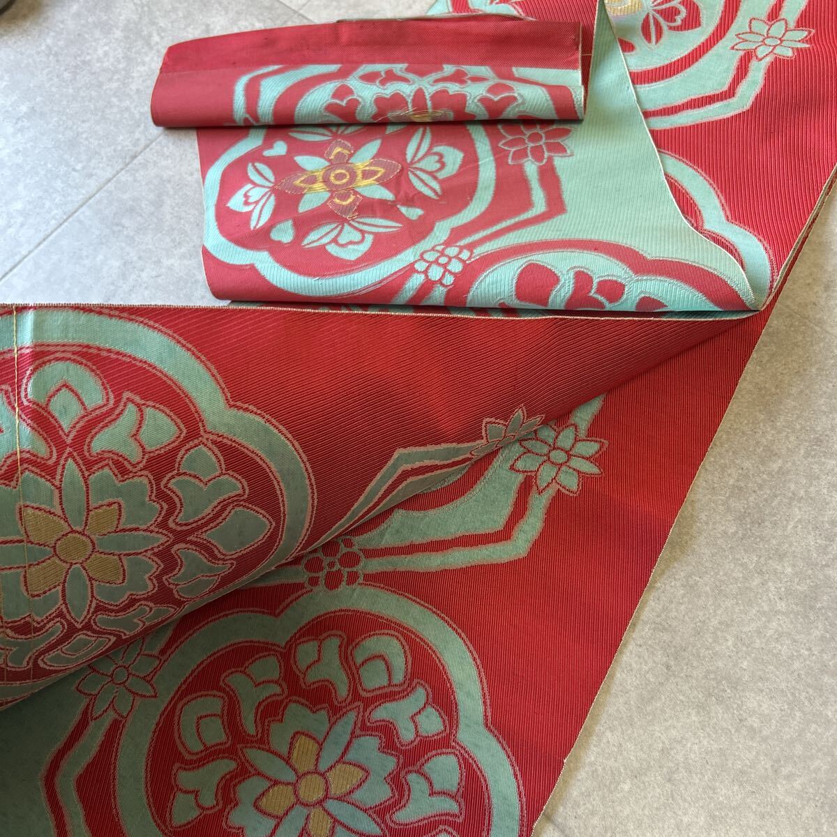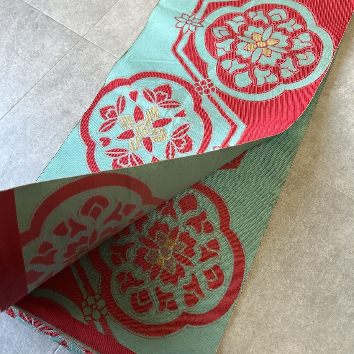 アンティーク 帯 着物 袋帯 青 花 表地のみ? 昭和レトロ 大正ロマン モダン 和洋折衷コーデ リメイク 25こ06-6k