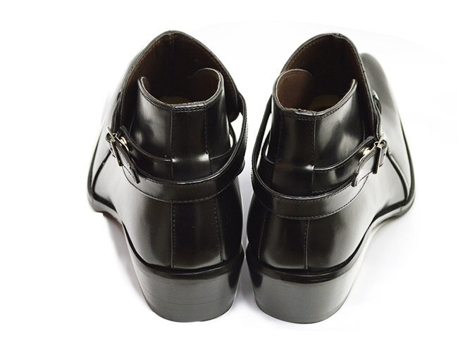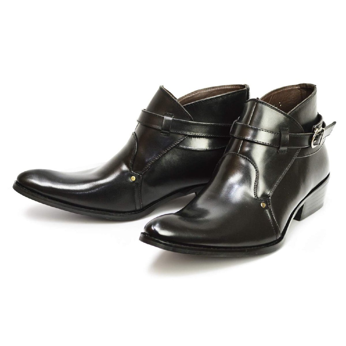新品■26cm ビジネスブーツ フォーマル ベルト モンク 4.5cm ヒールアップ ポインテッドトゥ メンズ ショートブーツ カジュアル 男 靴