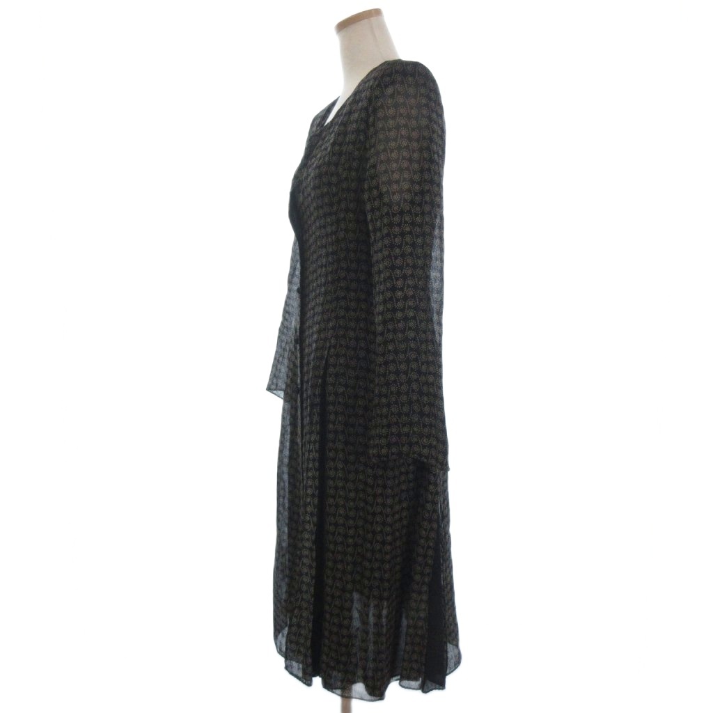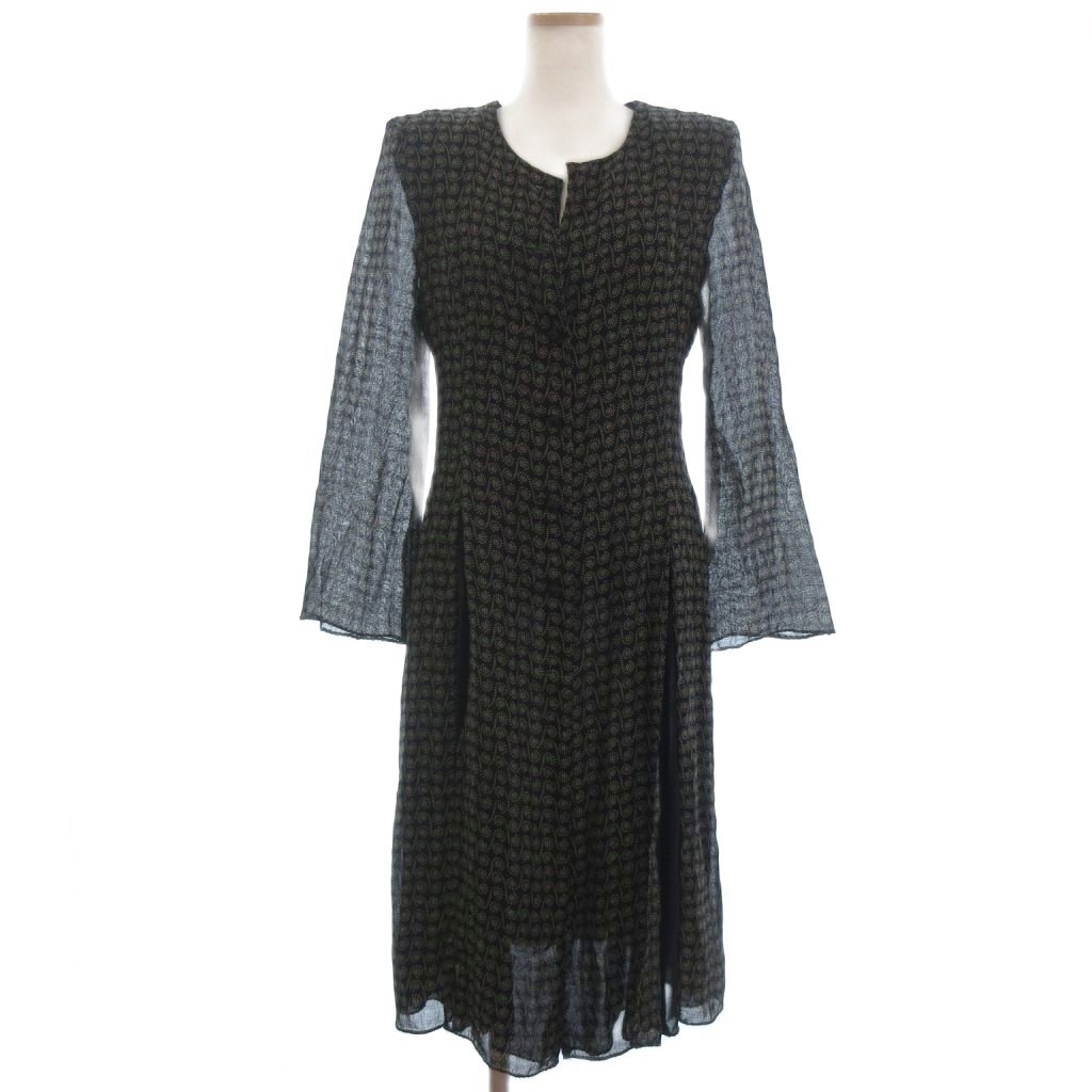 イタリヤ 伊太利屋 薄手 ジャケット 羽織 総柄 ウール 黒 ブラック ベージュ 9 M位 ■ECT レディース