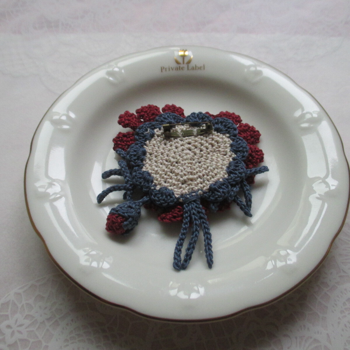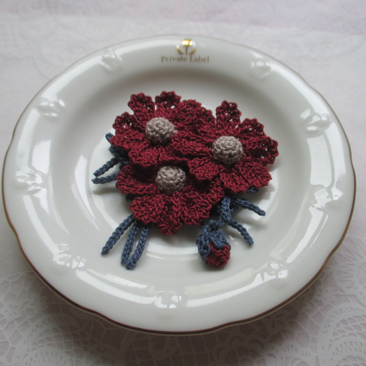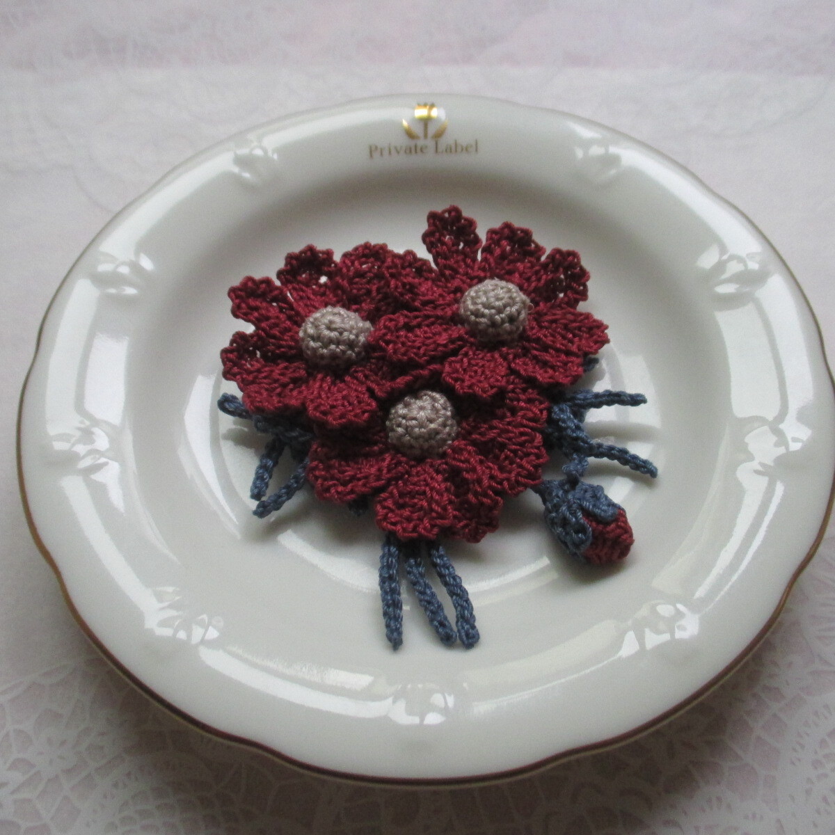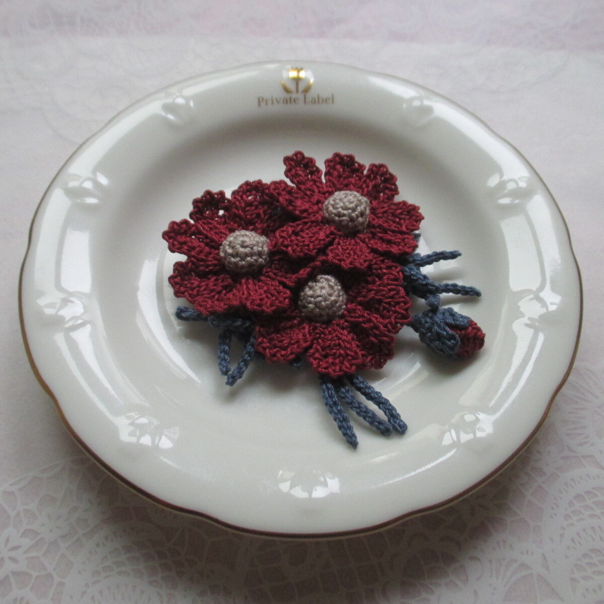 ハンドメイド☆レース編み☆チョコレートコスモスのコサージュ、ブローチ