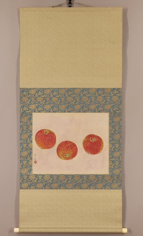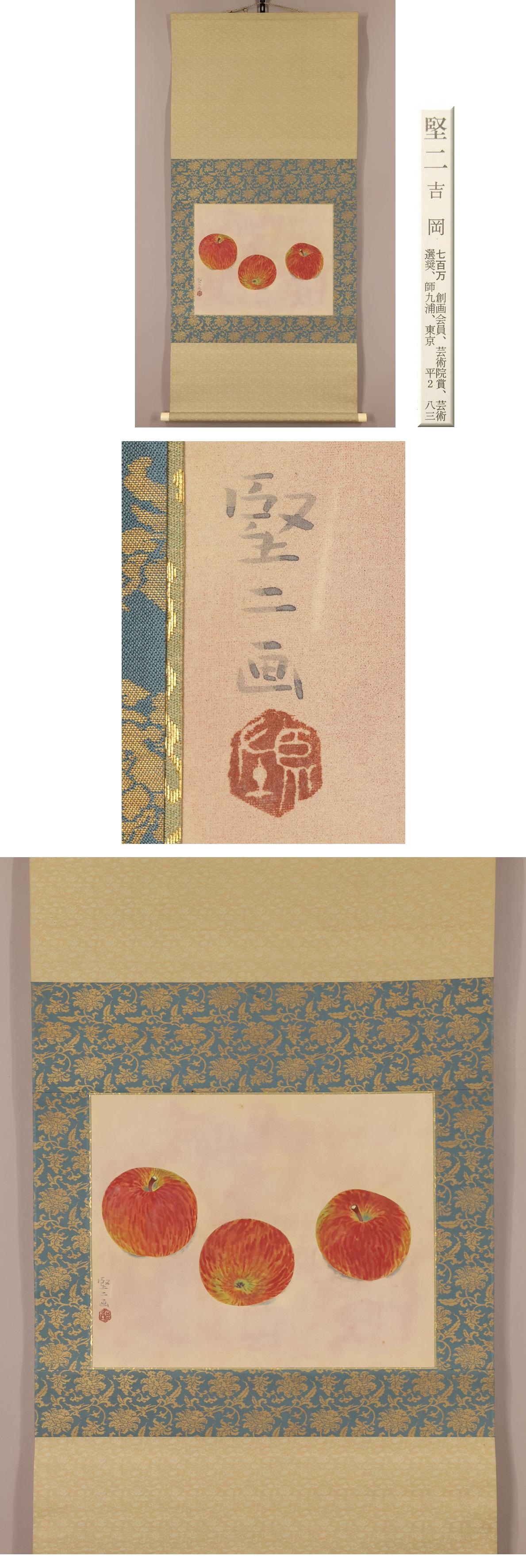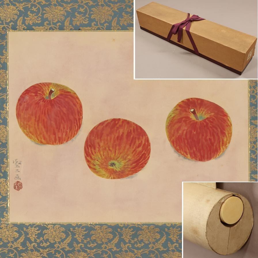 【真作】吉岡堅二◆林檎◆共箱◆二重箱◆太巻き◆肉筆◆絹本◆掛軸◆w847