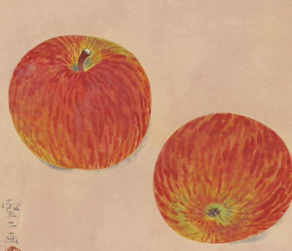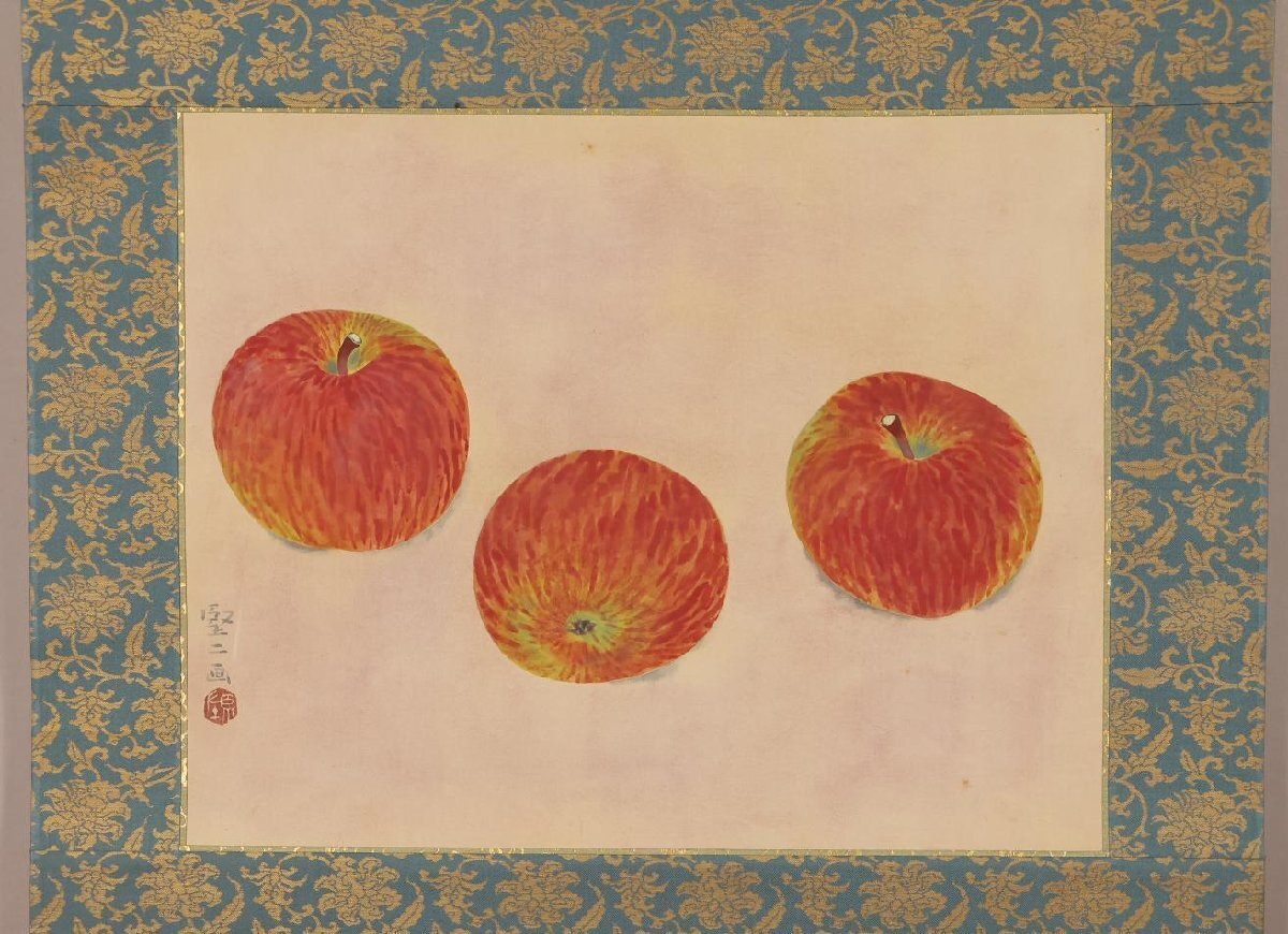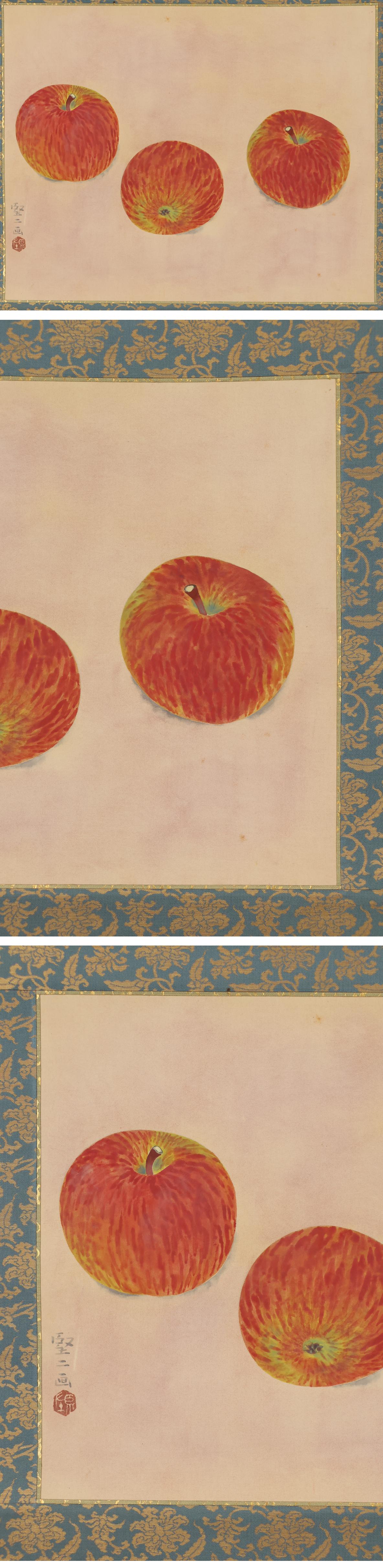 この作品は、肉筆・絹本により『林檎』が描かれております。
