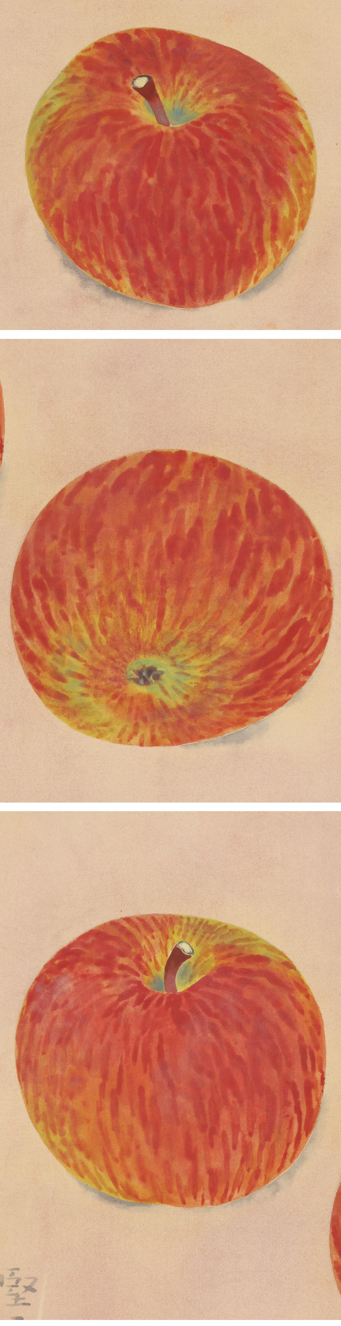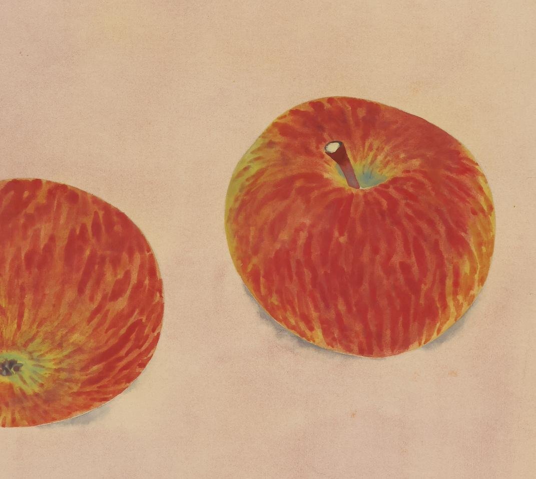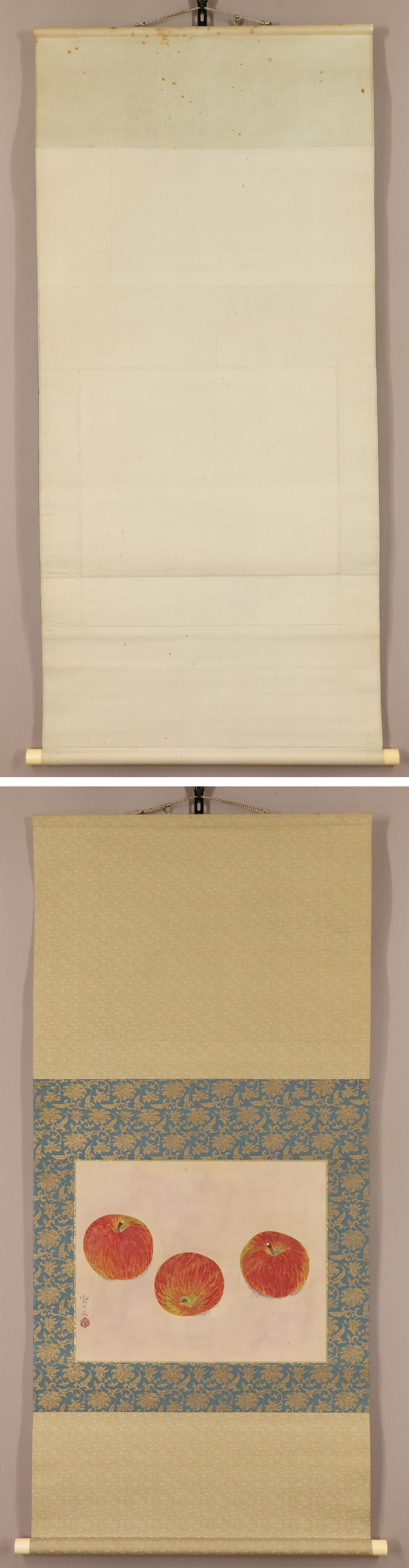 この作品は、肉筆・絹本により『林檎』が描かれております。