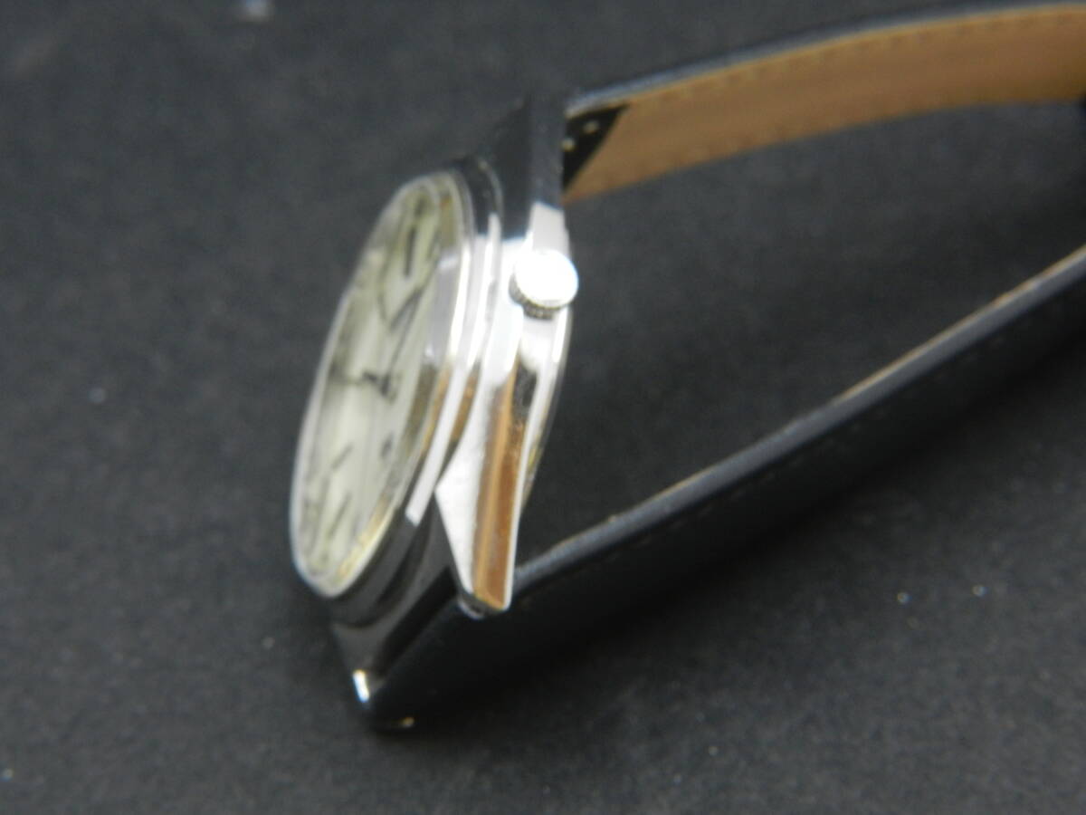 ケースに傷はありませんが、文字板色焼け、メダル破損があります。OH,ベルト交換済。