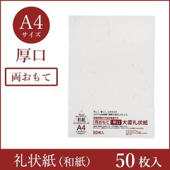 | ネコポス送料無料 和紙 大直礼状紙 A4 両おもて・厚口 コピー プリンタ用紙 50枚入