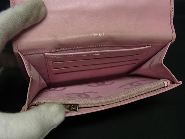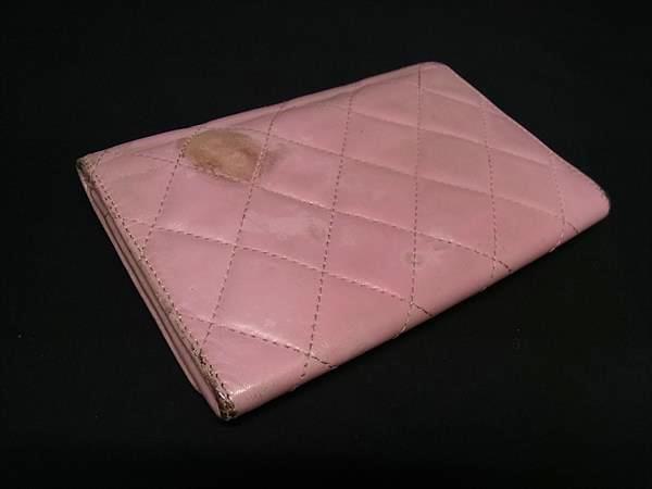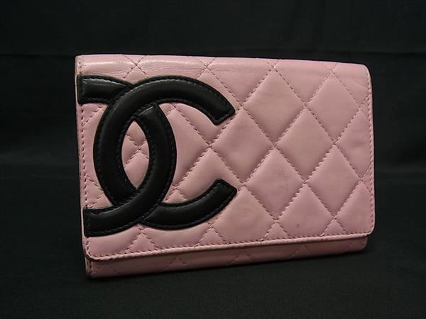 1円 CHANEL シャネル ココマーク マトラッセ カンボンライン レザー 二つ折り 財布 ウォレット 小銭入れ カード入れ ピンク系 FV1632
