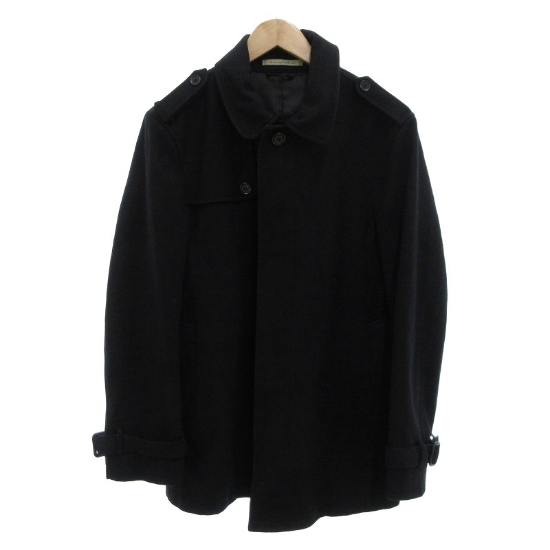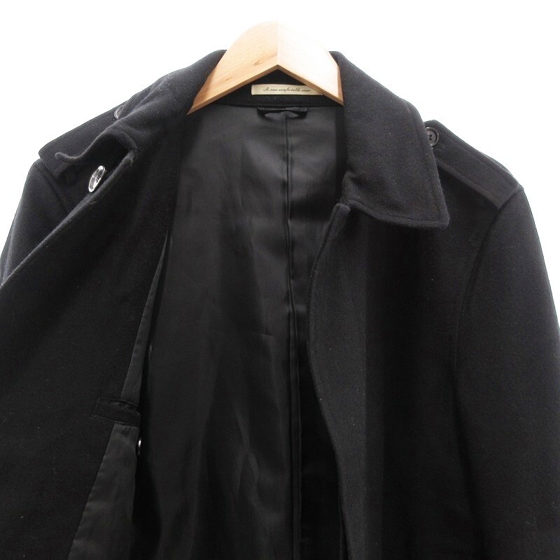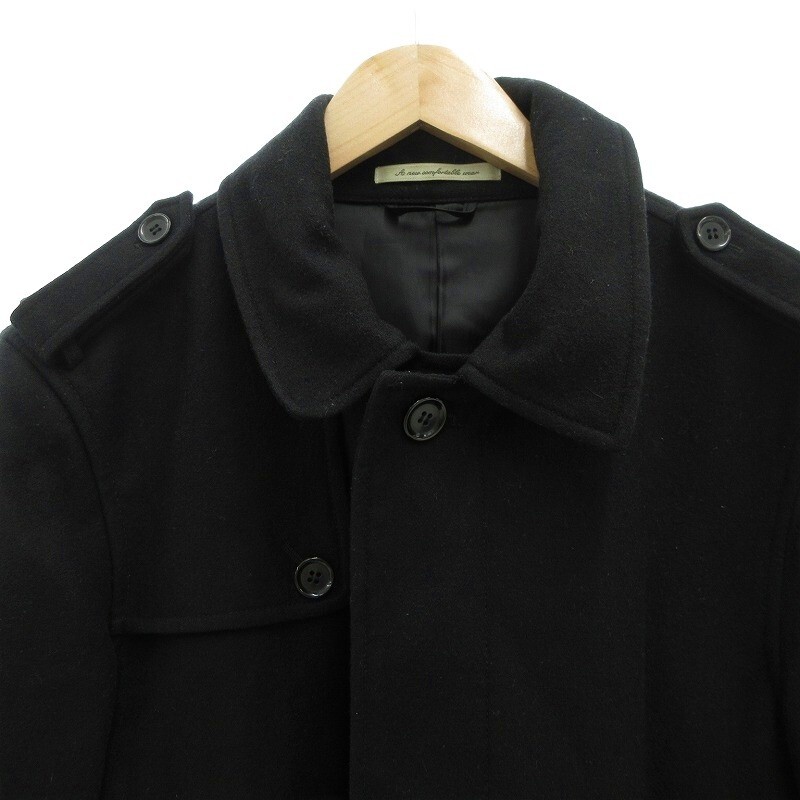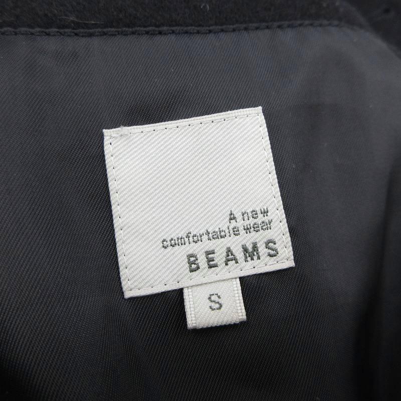 ビームス BEAMS ステンカラーコート ウール 比翼ボタン 衿裏 コーデュロイ S 黒 ブラック メンズ