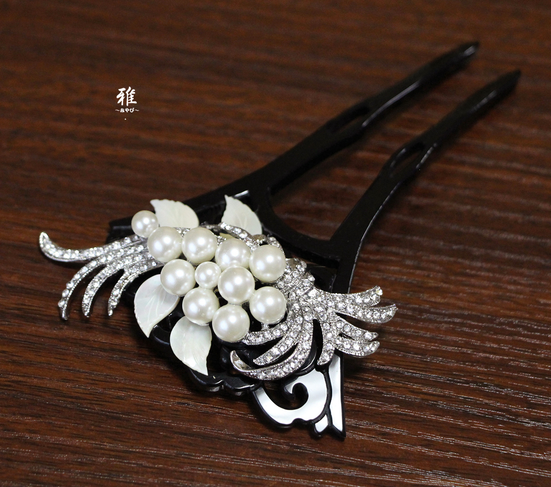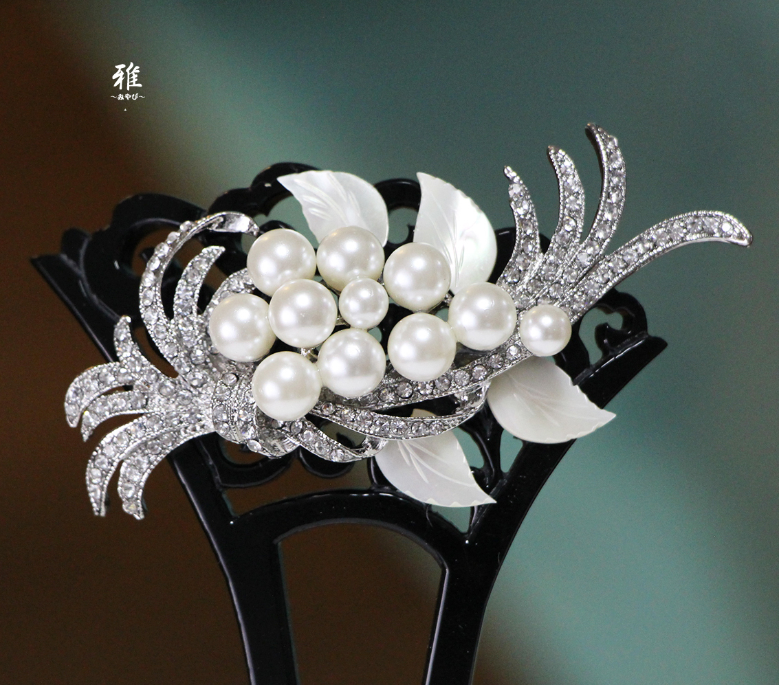 素敵な扇型かんざしに、ボリューム感たっぷりのフェイクパールと、