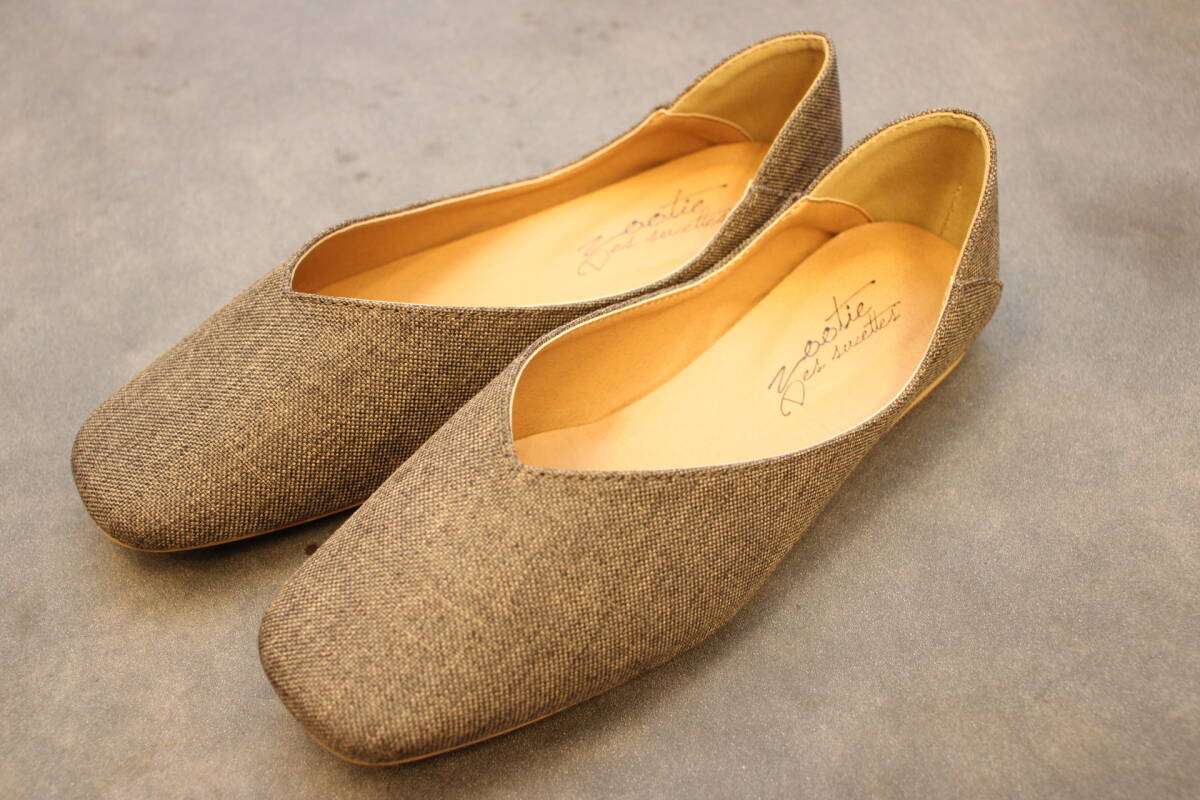 新品 未使用 Vカットフラットシューズ ブラウン Lサイズ 114