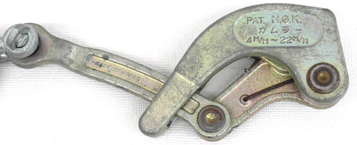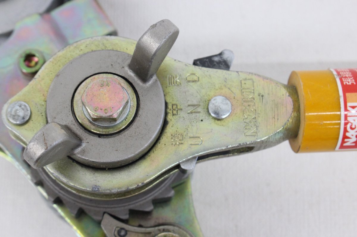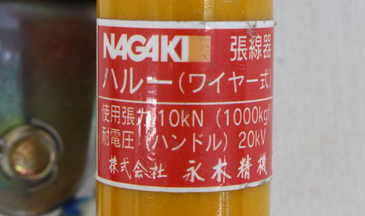 ◇現状品◇ NAGAKI 永木精機 ハルー(ワイヤー式) 張線器 (2761617M) ■こちらは現状品となります ・NAGAKI 永木精機 ・張線器 ・使用張力 10kN (1000kgf) ・耐電圧(ハンドル) 20kV ・カムラー:4M/M~22M/M ・ハルー (ワイヤー式) ■状態 ・金属部のメッキ部分にサビがございます ・ロープ部分にヨゴレがございます ■内容 ・写真に写っているものが全てです ---------------------------------------------------------- ※張線器の安全点検は落札者様でお願いいたします。 使用によるけがや事故などの災害は当方は責任を持てませんので ご理解の上ご入札ください。 ---------------------------------------------------------- |