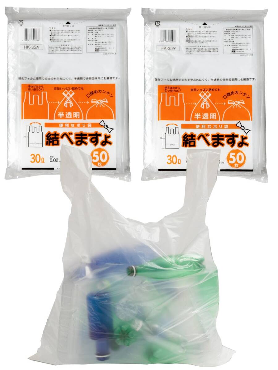 ケミカルジャパン ゴミ袋 手提げ 半透明 100枚 (50枚入×2セット) 横50cm 縦70cm 厚さ0.02mm 便利なポリ袋 30L 結べま