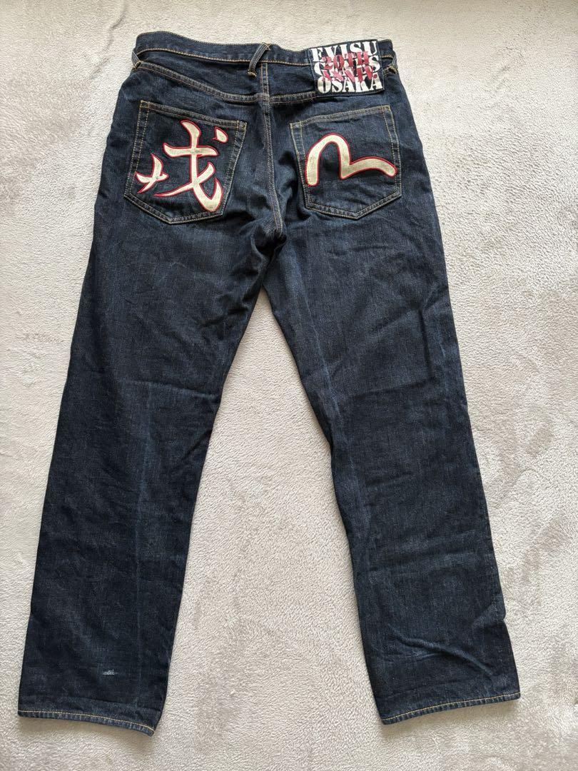 ダークブルーのEVISUデニム、左裾に小さな傷あり。 20周年記念限定モデルです。