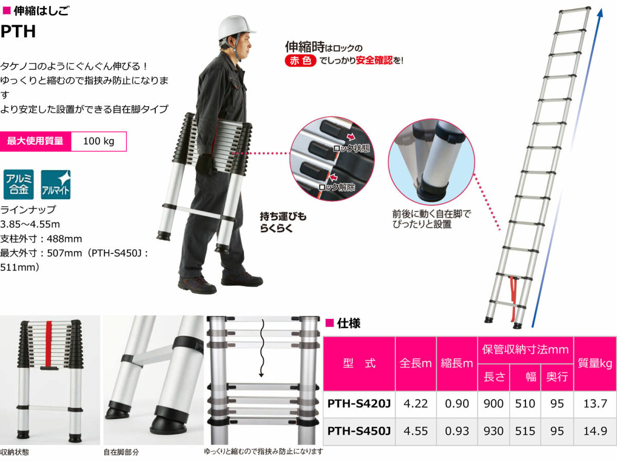 ピカ コーポレイション 伸縮はしご PTH-S420J ※こちらの商品は、「代金引換」支払を ご利用いただけません。