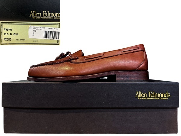 箱付き 新品 レア Allen Edmonds アレン・エドモンズ Naples ネイプルズ タッセルローファー チリ USA製 US10.5D アメリカ 革靴 ブラウン