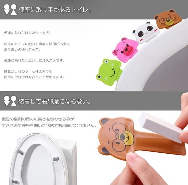 便座に貼り付けるだけで完成。 自宅のトイレに触れる事無く開閉が出来るお手洗いの便利グッズ! ◆便座に触れたくない人にオススメ! ◆貼るだけなので、女性の方でも簡単に取り付け可能! ◆便座の裏側の凹みに高さを合わせる事ができるので、便座を開いた状態でも邪魔になりません! ※カラーはランダムで1個のみを発送いたします。 |