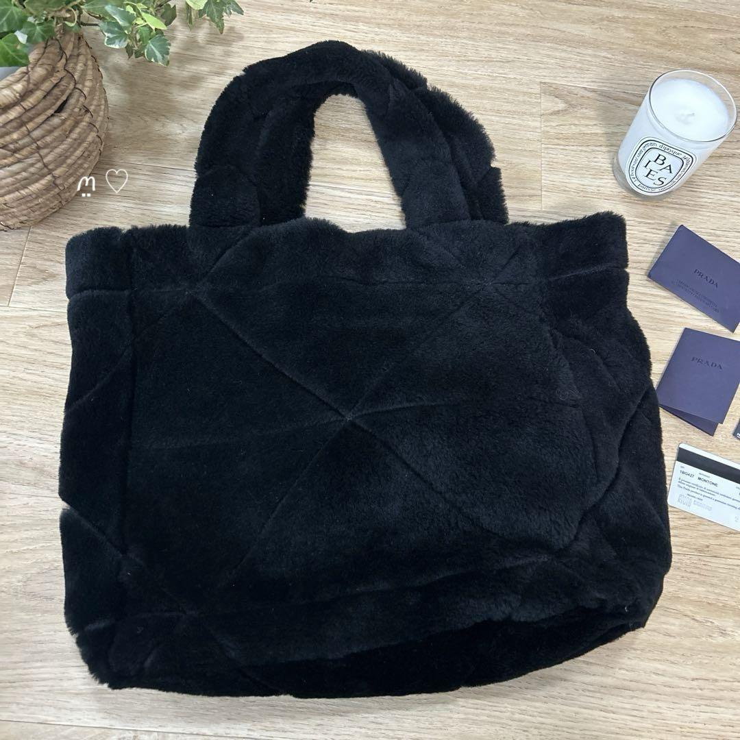 ふわふわと暖かみのある風合いが魅力的なムートン素材にトライアングルキルティングを施した、ふかふかでボリューム感のあるシルエットが可愛いトートバッグ。