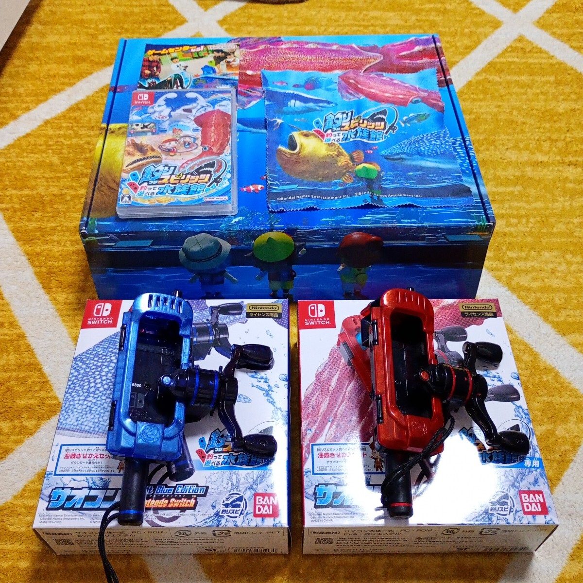 【釣りスピオリジナルデザインギフトBOX】釣りスピリッツ 釣って遊べる水族館 -Switch +【任天堂ライセンス商品】釣りスピリッツ 釣って遊べる水族館専用 サオコン 赤&青2個セット &【Amazon.co.jp限定特典】オリジナルデザイン マイクロファイバークロス 同梱