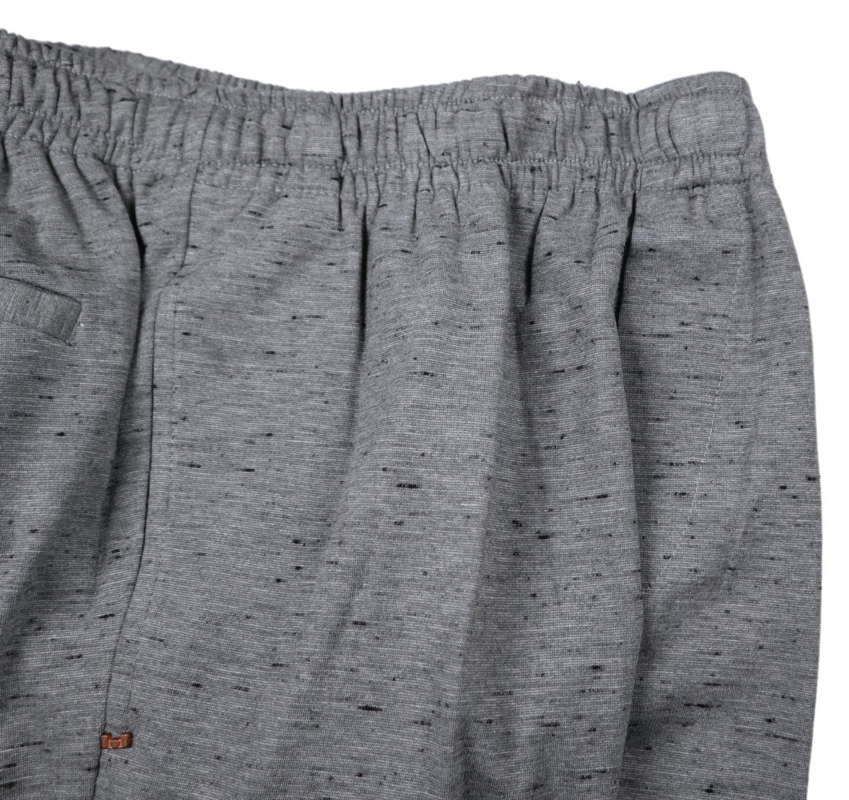 メランジグレー ジャージースウェット素材ながらウールを混紡することで、まるでドレスパンツのような上品&高級感に仕上がったメランジ調のミディアムグレー色。公式カラーは「GRIGIO」で、「レーヨン×ナイロン×ポリウレタン×ウール」の4種混紡素材です。フロントポケット下にはお馴染みの、ブランドネームの頭文字「E」を横にしたデザインのリベット入り。このリベットも、ヴィンテージ加工を施したピンクゴールド色にすることで、洒落感がアップしています。