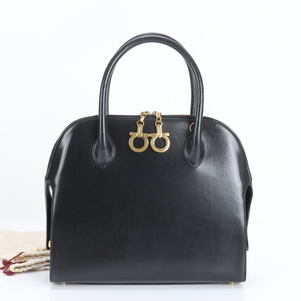 1円■美品■サルヴァトーレフェラガモ■ガンチーニ レザー トート バッグ ハンド ブラック 本革 ショルダー レディース RCE CU16-5