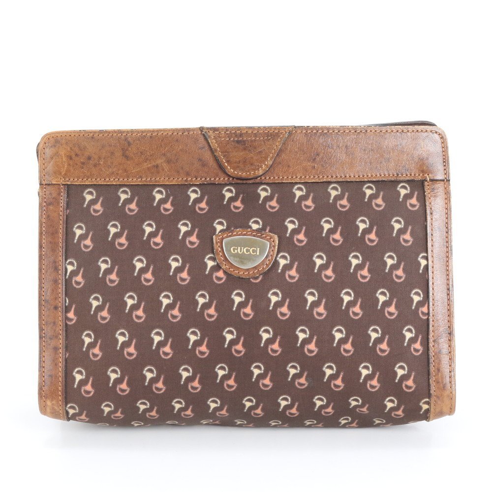 1円■美品■ヴィンテージ■グッチ■ホースビット 柄 レザー クラッチ バッグ ハンド セカンド ポーチ ブラウン 茶色 レディース RUE CU29-9
