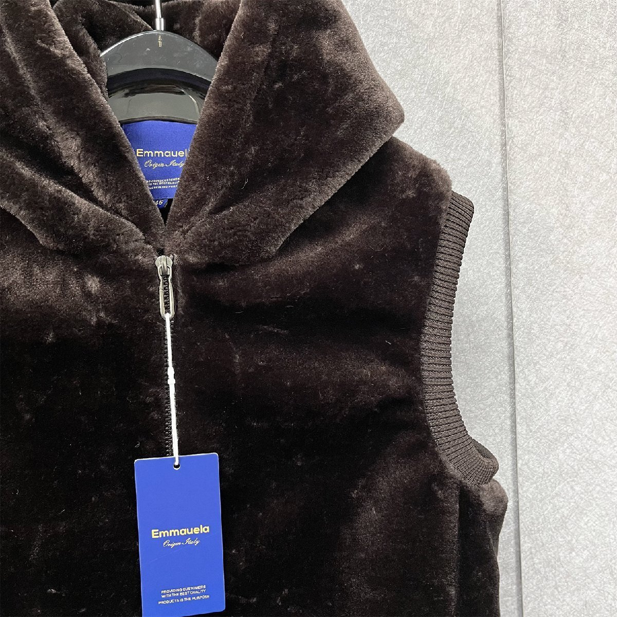上級・ミンク/カシミヤ混・毛皮ファーベスト 定価10万◆Emmauela・イタリア・ミラノ発◆防寒 暖かい モコモコ フード付き 男女兼用 XL/50