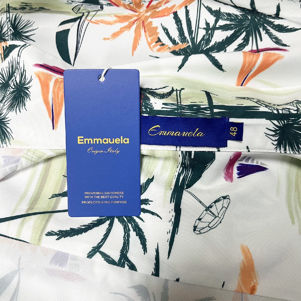 個性・アロハシャツ 定価3万◆Emmauela・イタリア・ミラノ発◆シルク混 速乾 涼しい 総柄 パームツリー柄 開襟 ハワイアン ビーチ L/48