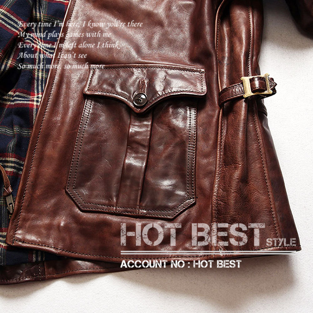最高峰 Gabriel 1.5mm ホースハイド メンズ 20's ニュースマンコート レザージャケット カーコート ブレーキマン ベジタブルタンニンなめし 馬革【XXL】HBY638